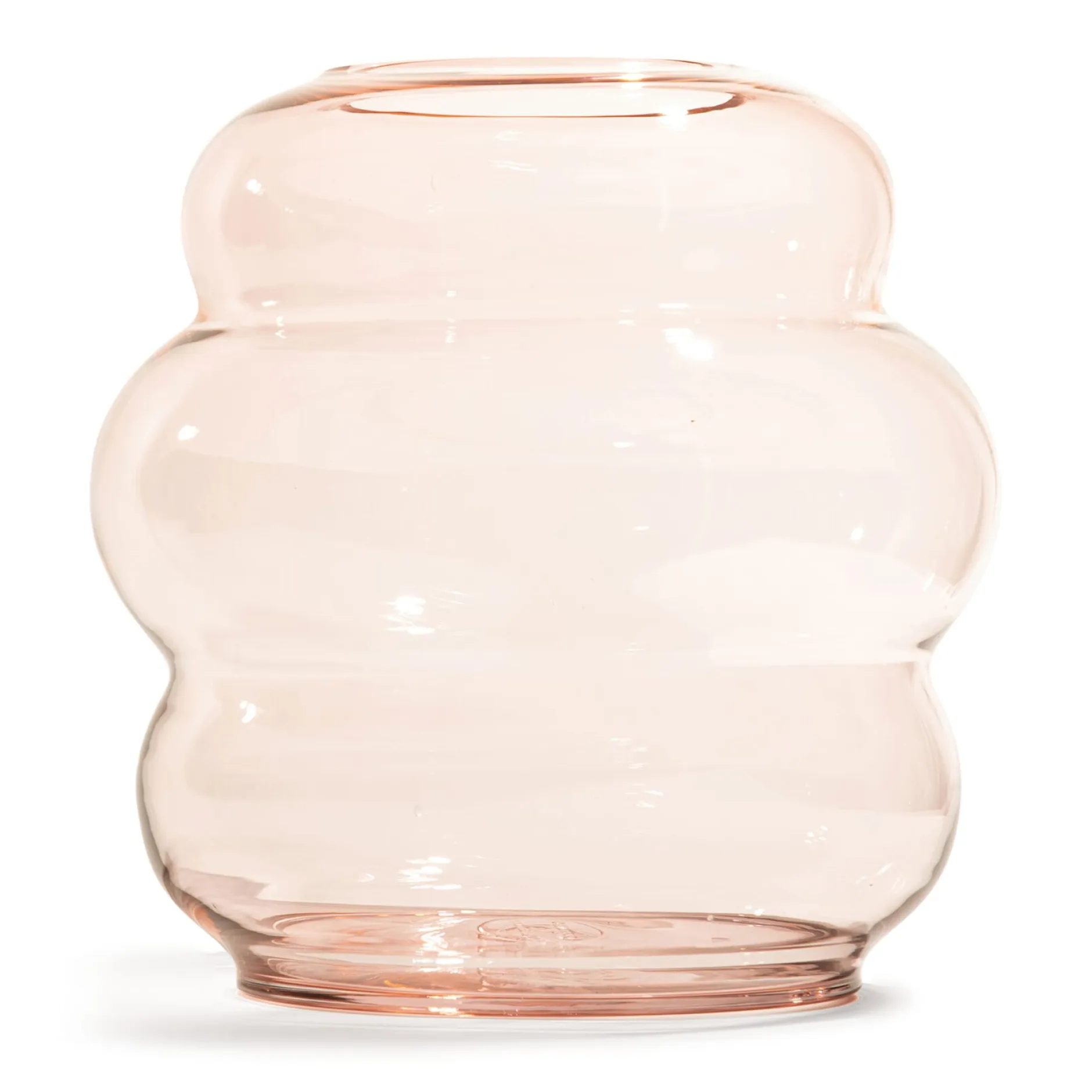 Die mittlere Größe einer Serie von Vasen in drei verschiedenen Formen und Größen sowie unterschiedlicher Farbigkeit. MUSE wird in klassischer Handwerksarbeit in einer tschechischen Glasbläserei produziert. Diese mundgeblasenen Vasen erhalten ihre zarte Farbigkeit und unterschiedliche Intensität durch einen Zusatz von Farbglas zu dem transparenten, farblosen Glas. In einer wohl organisierten Abfolge aus Schalung und Verformung unter Zuhilfenahme von Holzformen gibt ein letzter freier Arbeitsgang jeder Vase ihre individuelle Form.