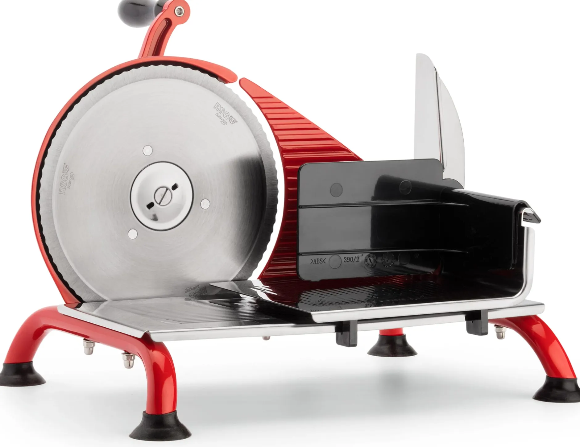 Das Metallgehäuse dieser Handschneidemaschine steht auf einem mit starken Gummi-Saugfüßen versehenen Stahlrohrgestell, und ihr Messer mit der Wellenschliffklinge schneidet Brot, Käse und Wurstwaren oder (geeignetes) Obst und Gemüse in hauchdünne bis etwa daumendicke Scheiben; die Größe des Messers in Kombination mit der Schnitthöhe – 15 cm ohne den Edelstahlschlitten, 14 cm mit – erlaubt das Teilen von größerem Schneidgut (wie etwa einem Viertellaib Käse), während mithilfe des Restehalters auch Kleinteiligeres am Messer vorbeigeführt werden kann (Tomaten, Radieschen). Die exakte Einstellung der Schnittstärke erfolgt über einen seitlich an der Maschine angebrachten Drehregler. Die hochgestellte Bauweise ermöglicht dem Schnittgut freien Fall auf einen untergestellten Teller oder ein Tablett.