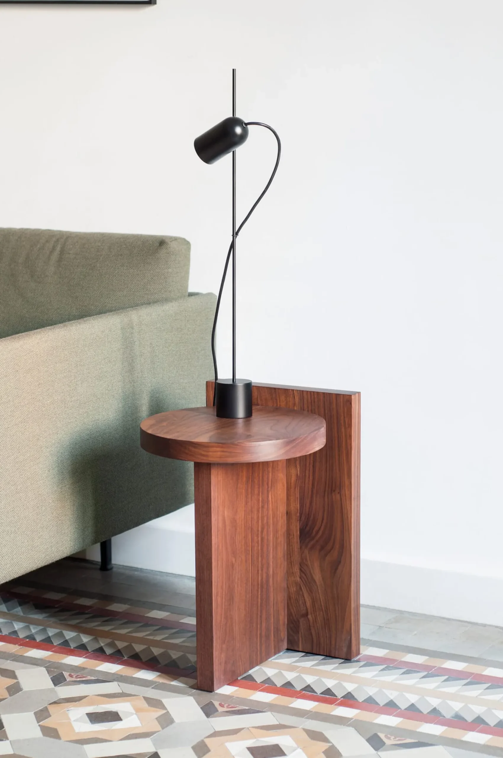 Der Name dieser Leuchten-Serie ist eine Anlehnung an ihre ursprüngliche Bestimmung: Fa ist der spanische Begriff für die Musiknote F – die filigranen Leuchten wurden zum Ausleuchten von Kunstwerken aus der Malerei im Rahmen einer Ausstellung im Opernhaus von Barcelona entwickelt. Und den Bezug zur Musik sieht man auch: Der feine Stab aus Stahl erinnert im Zusammenspiel mit dem über einen Magneten an ihm befestigten und verschiebbaren Strahler an eine Musiknote. Die massive Basis sorgt für die nötige Standfestigkeit, das 2,40 m lange Kabel für Bewegungsfreiheit – des Strahlers am Stab und der kleinen Leuchte auf dem Tisch oder im Regal. Die Leuchte ist dimmbar.