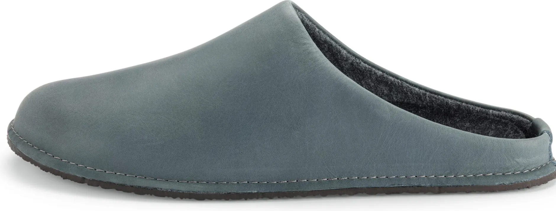 Der Bauform nach ist dies eine „Pantolette“, von Machart, Aussehen und Auftritt allerdings fast schon ein ein Schuh, einer fürs Haus eben. Das Obermaterial ist ein kerniges, vegetabil gegerbtes Rindleder mit glatter, durch die Färbung leicht wolkiger Oberfläche. Das Futter ist ein wärmender, fußklimatisch günstiger Wollfilz. Die Innensohle besteht aus einem anatomisch geformten Kork-Latex-Fußbett, ebenfalls mit Wollfilzauflage. Sie ist herausnehmbar und kann bei Bedarf durch eigene Einlagen ersetzt werden. Für Ausflüge in den Hof, auf Terrasse und Balkon oder andere bisweilen leicht feuchte Untergründe stattet Gottstein den Pantoffel mit einer griffigen Kreppsohle aus.