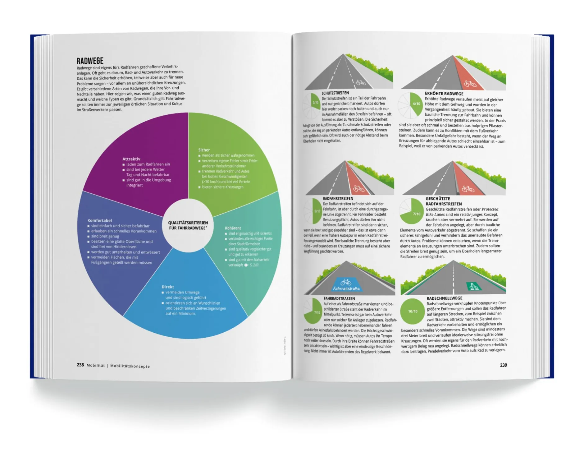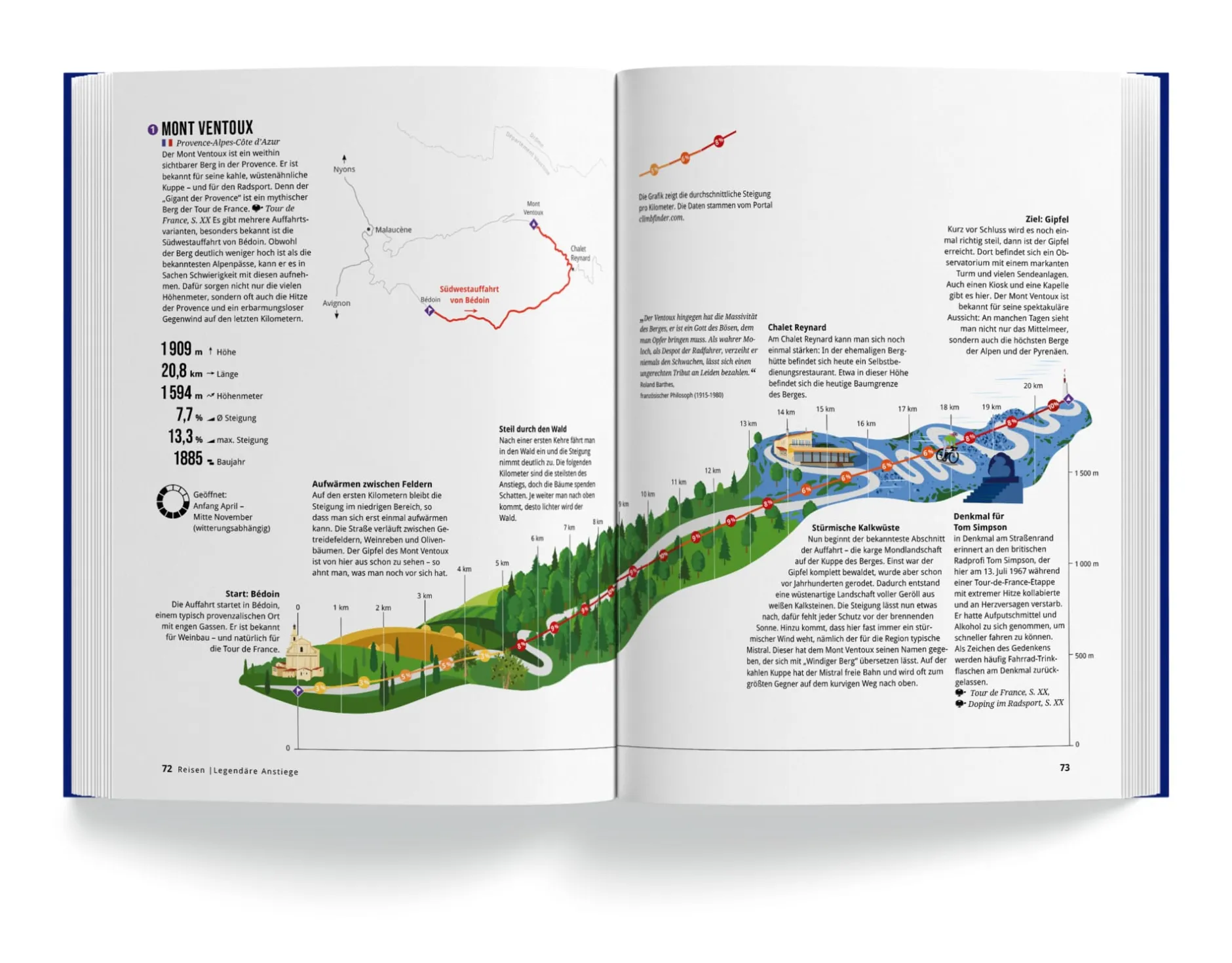 Das Fahrrad ist über 200 Jahre alt – und heute wichtiger denn je. Es ist Begleiter in allen Lebenslagen, mechanisches Wunderwerk, Sportgerät und Freiheitsmaschine. Und ein Schlüssel für lebenswerte Städte der Zukunft. Das Fahrradbuch vermittelt in über 1000 Grafiken, Karten und Illustrationen umfassendes Wissen über das Fahrrad. Es erzählt von der Laufmaschine, dem ultraleichten Carbon-Rennrad oder dem E-Lastenrad. Vom Glücksgefühl auf zwei Rädern und dem gefürchteten Hungerast. Von den schönsten Radreisen, mythischen Bergen des Radsports und Legenden der Tour de France. Von autofreier Mobilität, wachsender Fahrradkultur – und den schönsten Songs und Filmen übers Radfahren. Ein Buch zum Stöbern und Entdecken für alle, die ihr Fahrrad lieben.