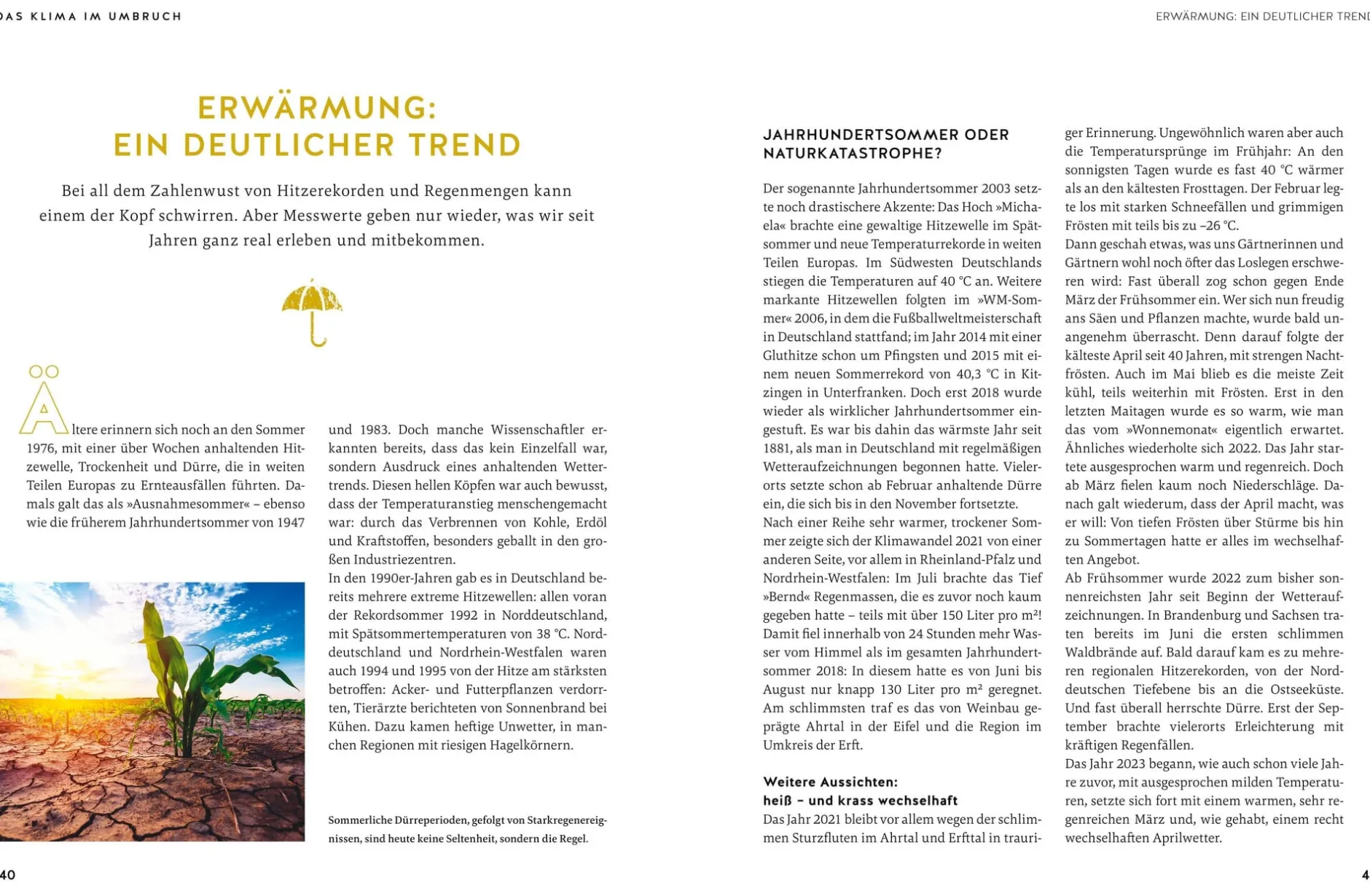 Hitzewellen, lange Trockenzeiten und Starkregen-Ereignisse: Den Klimawandel und seine Auswirkungen auf die Vegetation spüren wir leider schon sehr deutlich. Dieser umfassende Ratgeber zeigt neben den Hintergründen des Klimawandels detailliert auf, was sich in unseren Breiten in Zukunft verändern wird und wie wir unsere Gärten für diesen Wandel bestens rüsten können.