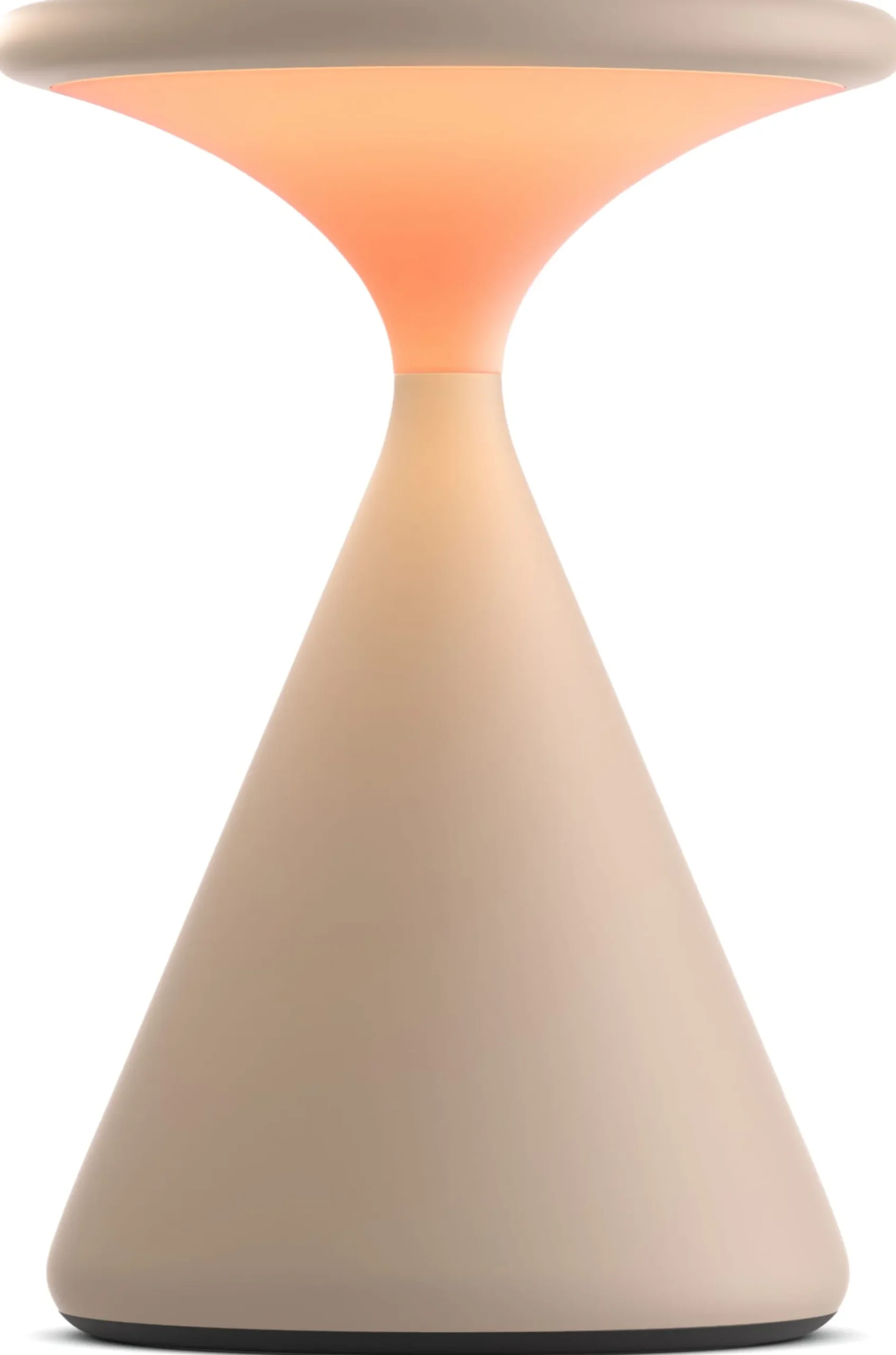 Lampenkörper Aluminium pulverbeschichtet, Diffusor Polycarbonat (PC). Höhe 19 cm, Ø 12,8 cm. Gewicht 800 g. Touchdimmer. Die Leuchte enthält LED-Lampen, Leistungsaufnahme max. 7,7 W, Lichtstrom max. 450 lm, Farbtemperatur 1.300–2.700 K. Inkl. USB-C-Ladekabel, Länge 1 m.