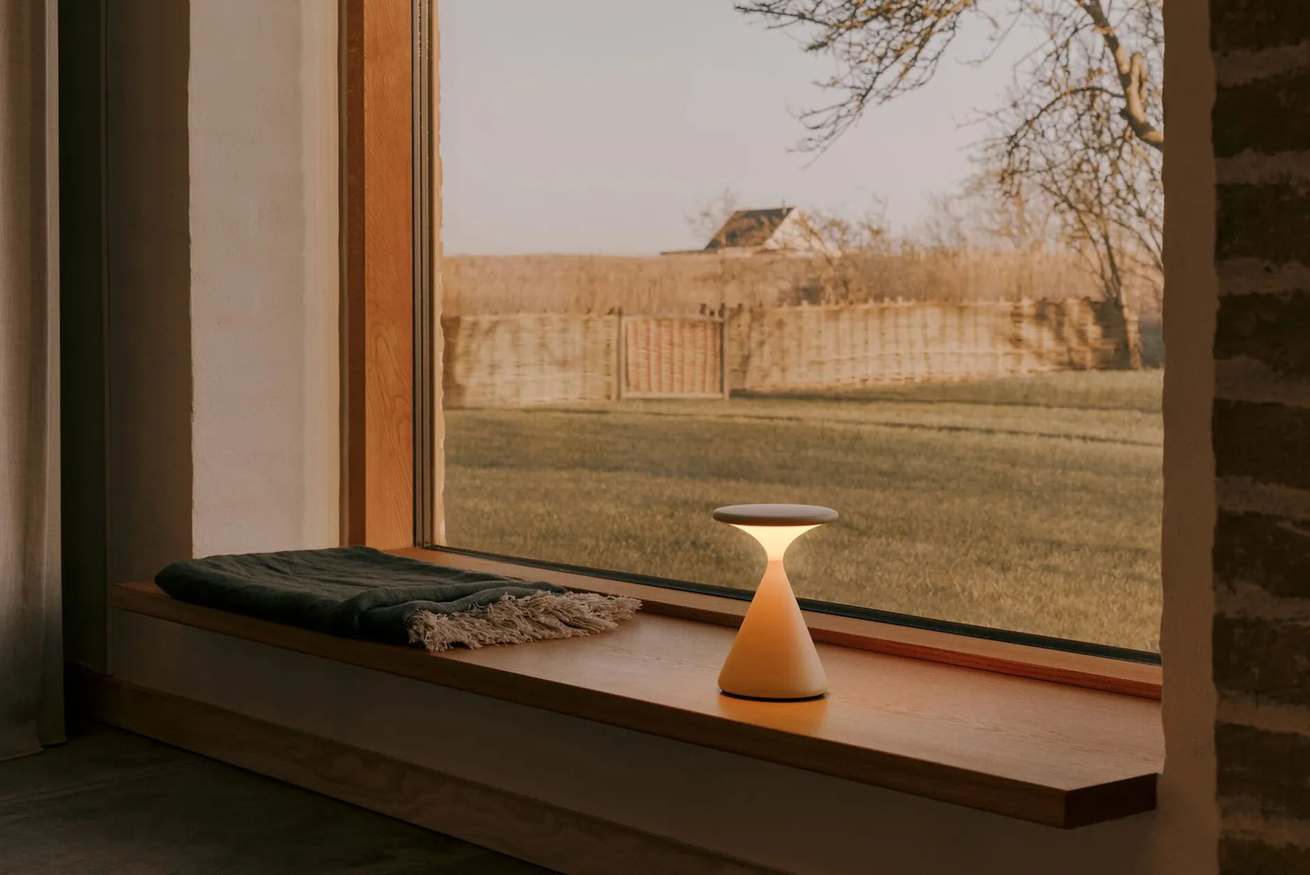 Mobile Akkuleuchten sind derzeit omnipräsent, was nicht zuletzt daran liegt, dass ihre Handhabung ungemein praktisch ist und die Leuchten vielseitig einsetzbar sind. Große Unterschiede gibt es jedoch auch hier – in Sachen Materialität, Form und Leistung. Hier kommt eine Leuchte von Grau in Hamburg, die unserer Meinung nach derzeit das oberste Ende in diesem Segment markiert. Das beginnt beim Material. Das Gehäuse besteht aus optisch wie haptisch angenehmem hellgrau pulverbeschichtetem Aluminiumdruckguss, der Diffusor ist aus stabilem Polycarbonat. Sodann die Funktion: Der Leuchtenkörper hat die Form eines Kegels, was einerseits Raum für die verbauten Akkus gibt, die der Leuchte eine Laufzeit von sage und schreibe 8 bis 150 Stunden spendieren. Andererseits reflektiert er das Licht in einem günstigen Winkel (wir erinnern uns: Einfallswinkel gleich Ausfallswinkel) in den Raum.