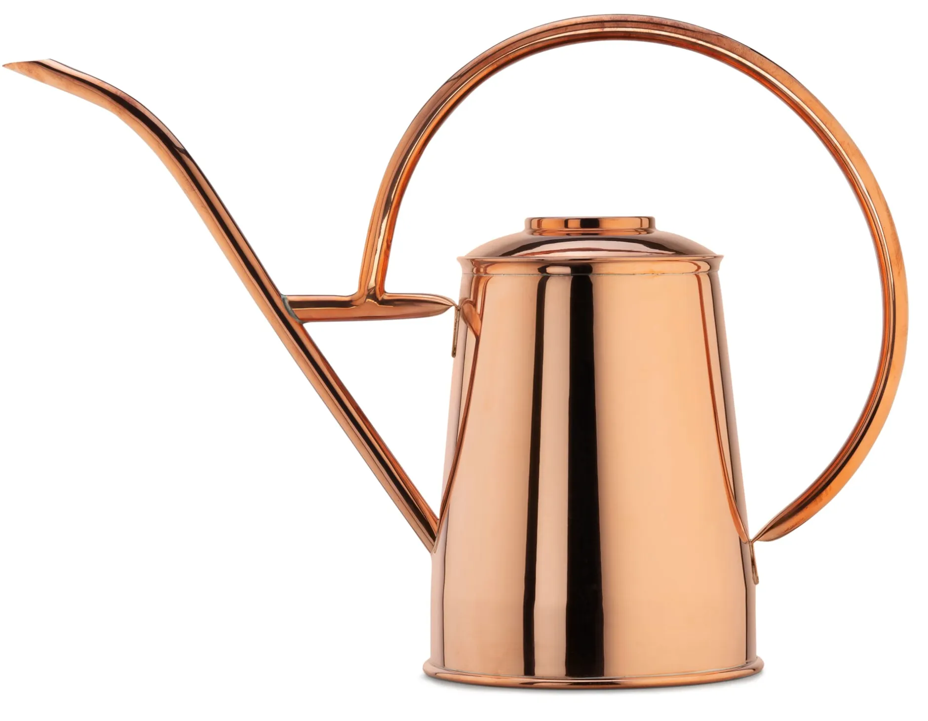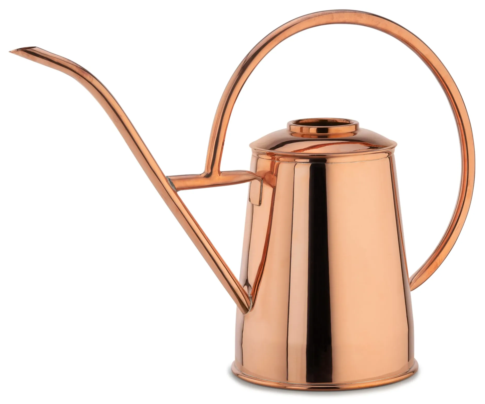 Glänzend poliertes Kupfer ist immer ein Hingucker – umso mehr, wenn es in solcher Wohlgestalt daherkommt. Unsere große Gießkanne aus poliertem Kupfer eignet sich insbesondere zur Bewässerung Ihrer größeren Zimmer-Kübelpflanzen. Wir empfehlen, sie direkt bei den Pflanzen zu positionieren: aus praktischen Gründen (an ihrem Einsatzort) und noch mehr aus dekorativen, denn neben Zimmerpalme, Monstera und Calathea macht diese Gießkanne doch wahrlich eine gute Figur. Wenn Sie sie lieber draußen verwenden und auf Terrasse oder Balkon in Szene setzen möchten, ist das auch kein Problem. Beachten Sie nur bitte, dass das Kupfer dann recht bald Patina ansetzen und seine glänzende Oberfläche einbüßen wird (was aber höchstens eine optische Veränderung, aber keine funktionelle Einschränkung bedeutet). Die Gießkanne kommt aus der Türkei, wo das Kupferhandwerk eine jahrhundertealte Tradition besitzt.