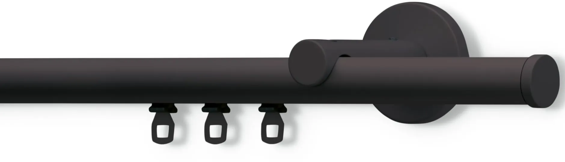 Die Halterungen sind aus leichtem Aluminium, das eloxiert oder weiß pulverbeschichtet ist, und passen so farblich perfekt zu den Gardinenstangen. Lediglich bei der bronzefarbenen Gardinenstange müssen Sie eine schwarze Deckenhalterung wählen (die Wandhalterung ist in Bronzefarben erhältlich).