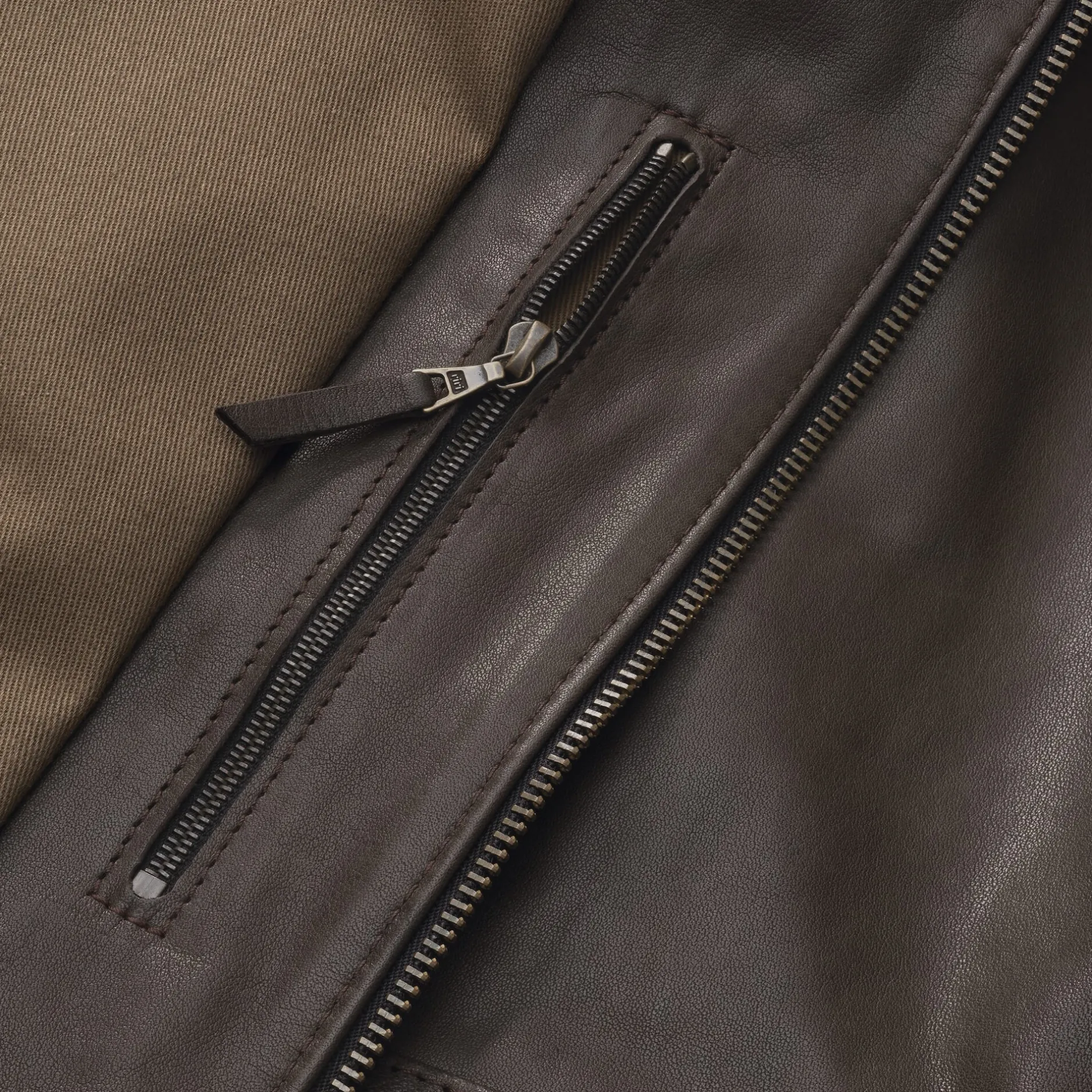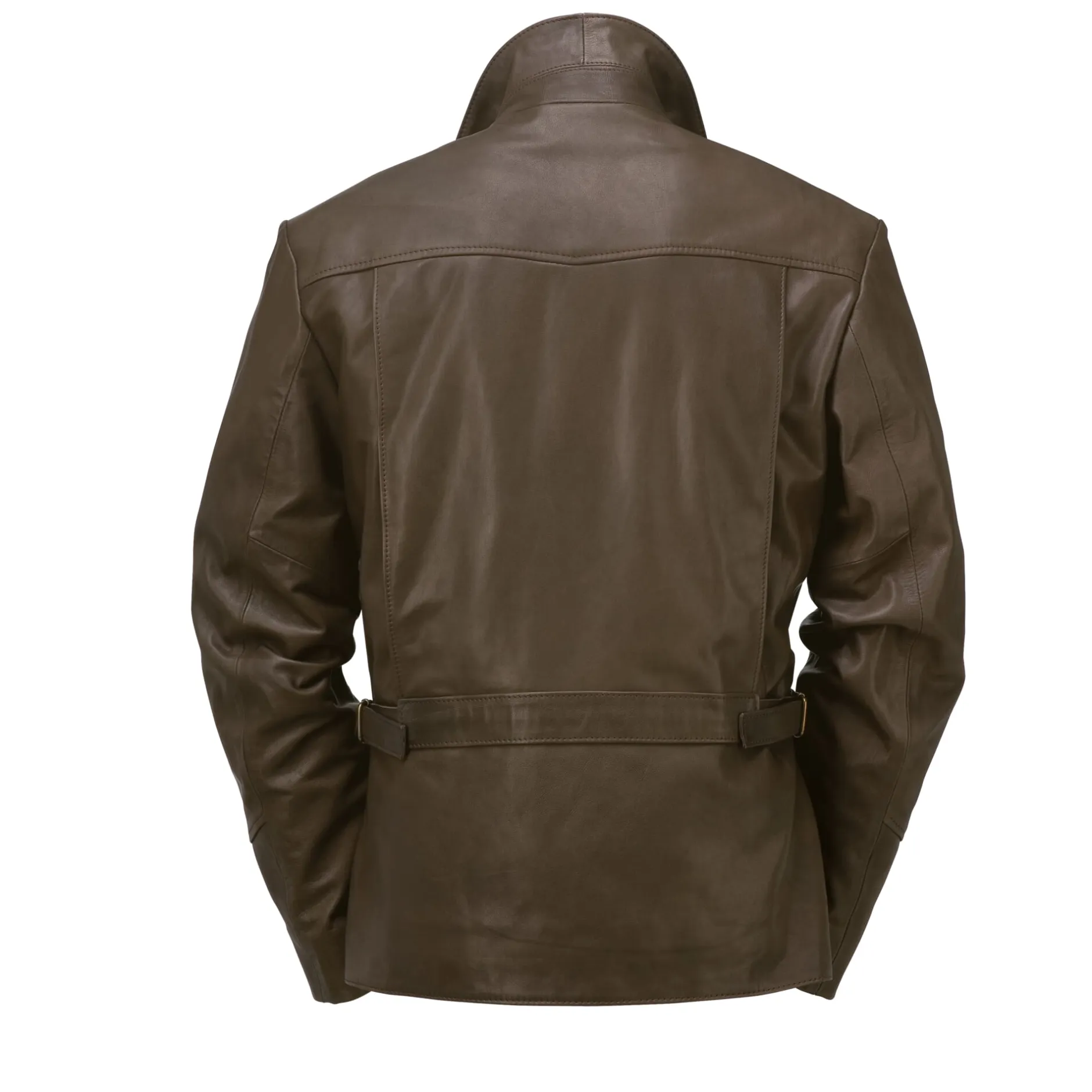 Bis über das Gesäß reicht diese von der Motorradbekleidung der 1960er Jahre beeinflusste Jacke. Das Leder kommt aus Italien, wo es chromfrei gegerbt wird. Die Spuren eines Tierlebens (Dornenrisse, Stiche) werden durch die Fassfärbung bewusst nicht zugespritzt und abgedeckt. Seitlich unterhalb der Rückenpasse aufspringende Falten erweitern den Spielraum der Schultern in der Vorwärtsbewegung, was auch im Leben ohne Motorrad von Vorteil ist. Per Gurt im Rücken lässt sich die Taillenweite regulieren. Zwei große Paspeltaschen sind im unteren Vorderteil eingearbeitet. Eine in die Teilungsnaht der Schulterpasse eingearbeitete rechte Brusttasche ist mit Reißverschluss zu schließen. Eine unter dem Zweiwegereißverschluss liegende Blende bietet Windschutz. Ein stabiler Baumwollköper dient als Rumpffutter, im Ärmel erleichtert ein kräftiger Viskoseserge das Anziehen.