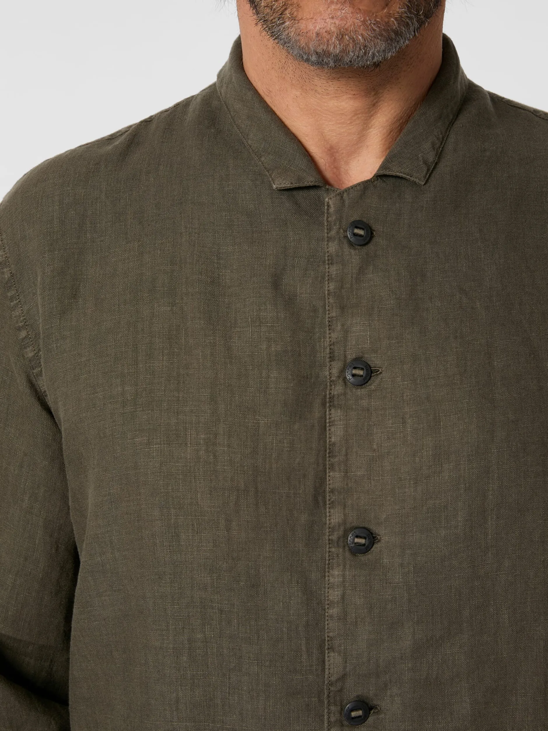 100% Leinen. Kunststoffknöpfe. Hergestellt in Tschechien. Rückenlänge bei Größe L = 77 cm.