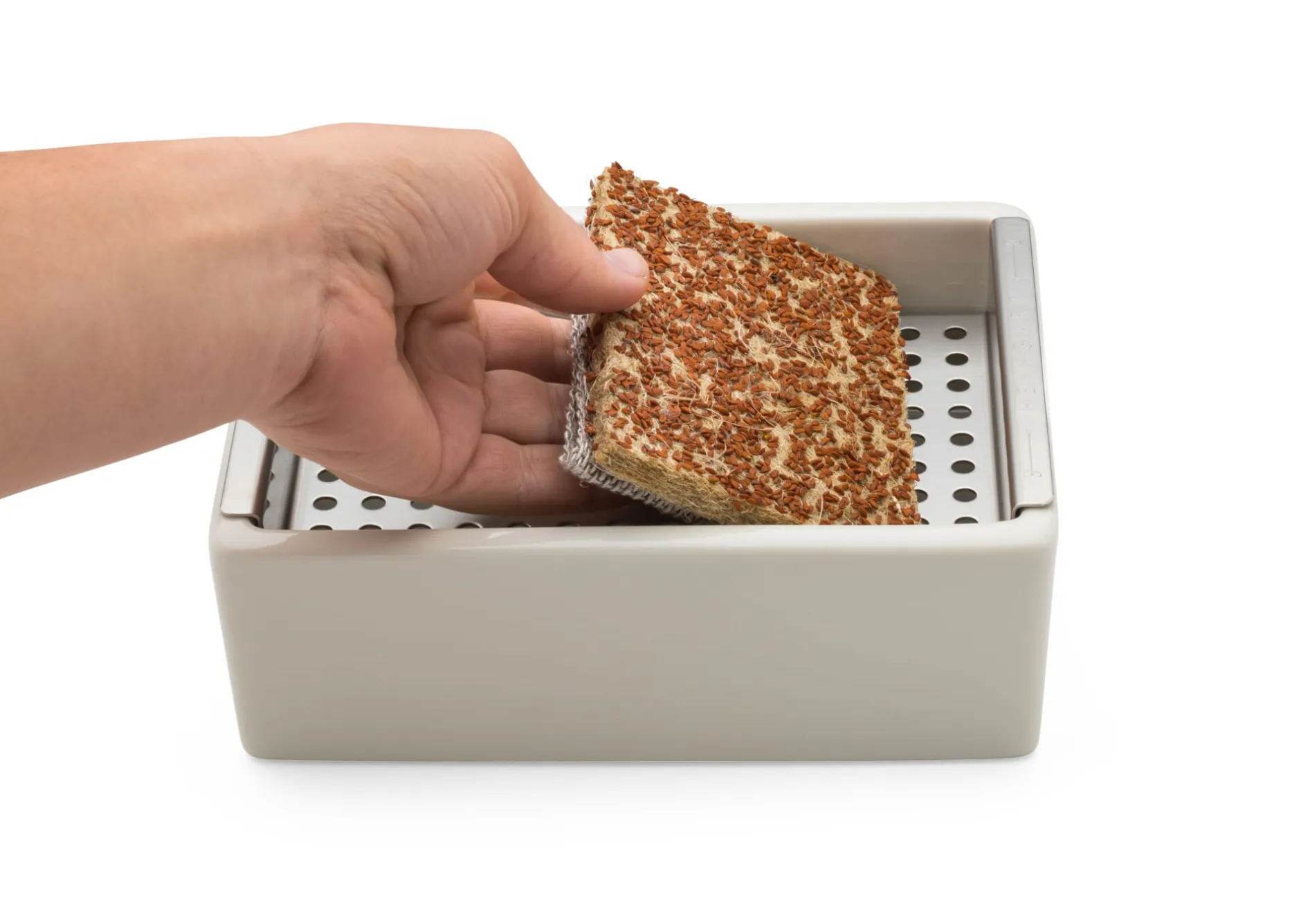 Zum Start liegen zwei Saatpads aus Naturfasermaterial im passenden Format bei, die auf dem Einsatz platziert werden. Bis die ersten Microgreens sprießen, wird es nur ein paar Tage dauern. Wer also ganz frisch ernten möchte, lässt dieses Anzuchtset am besten auf dem Esstisch stehen – schön genug ist es dafür.