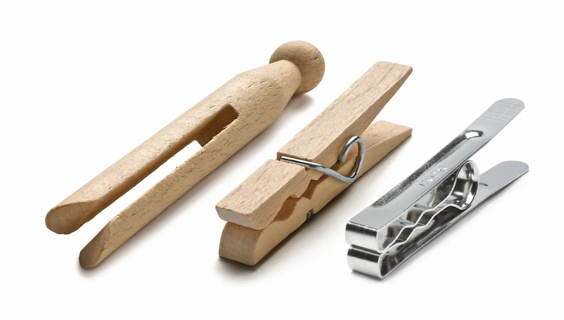 Auch bei einer steifen Brise halten diese Wäscheklammern das wehende Betttuch sicher. Die Wäscheleine braucht dazu freilich einen größeren Durchmesser (Schlitzbreite der Klammern 4 mm), als ihn die üblichen Plastikschnüre haben. (Nicht zum Aufhängen empfindlicher Wäschestücke geeignet.)