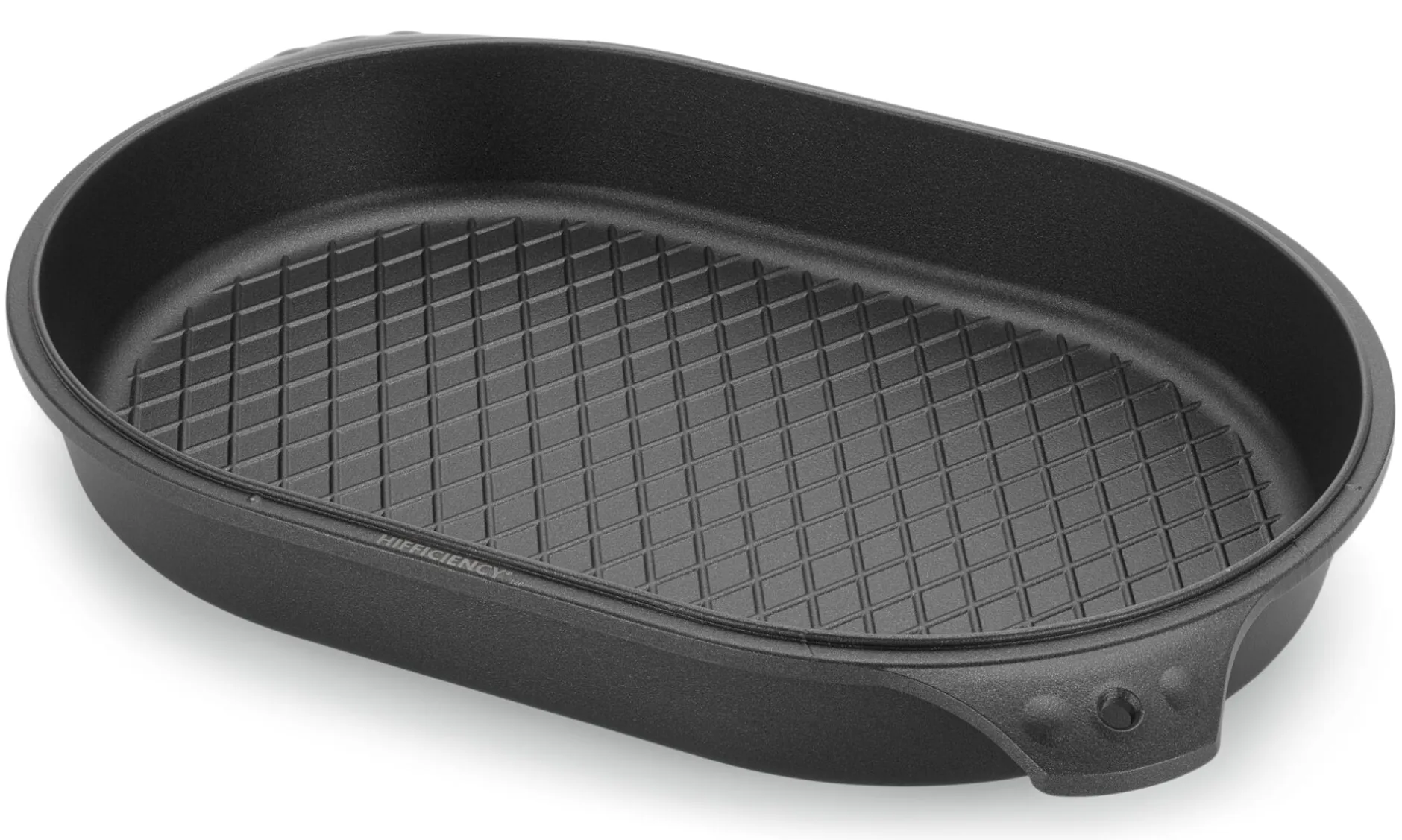 Seine Vielseitigkeit in der Küche verdankt der Hifficiency®-Bräter auch dem Material, aus dem er hergestellt wird. Aluminium gilt ähnlich wie Kupfer als schneller Wärmeleiter. So materialopulent in Form gegossen wie hier, verfügt Aluminium zugleich über ausgezeichnete Wärmespeicherkapazitäten. Eine Besonderheit stellt die durchgehende Antihaftbeschichtung aus Duraquarz® (Quarzkeramik und Polyetherketon) dar, die lösungsmittelfrei als Pulverlackierung aufgetragen, aber nicht eingebrannt wird. Sie bekommen mit diesem Bräter also sämtliche Vorteile einer Antihaftbeschichtung – inklusive der vereinfachten Reinigung –, müssen sich aber nicht um etwaige gesundheitsschädigende Bestandteile derselben sorgen. Wir haben nur eine Bitte: Achten Sie darauf, die Wärmezufuhr zu regulieren, also nicht auf der höchsten Stufe zu beginnen. Vor allem wenn Sie diesen Bräter auf dem Induktionsherd verwenden, kommt es darauf an, das beschichtete Material nicht zu überhitzen, daher gilt: mittlere Einstellung genügt. Und bitte denken Sie daran, zum Anbraten nicht mit Olivenöl zu arbeiten. Olivenöl wird in diesem Bräter erst sehr schnell zu heiß und dann sehr schnell verrauchen.