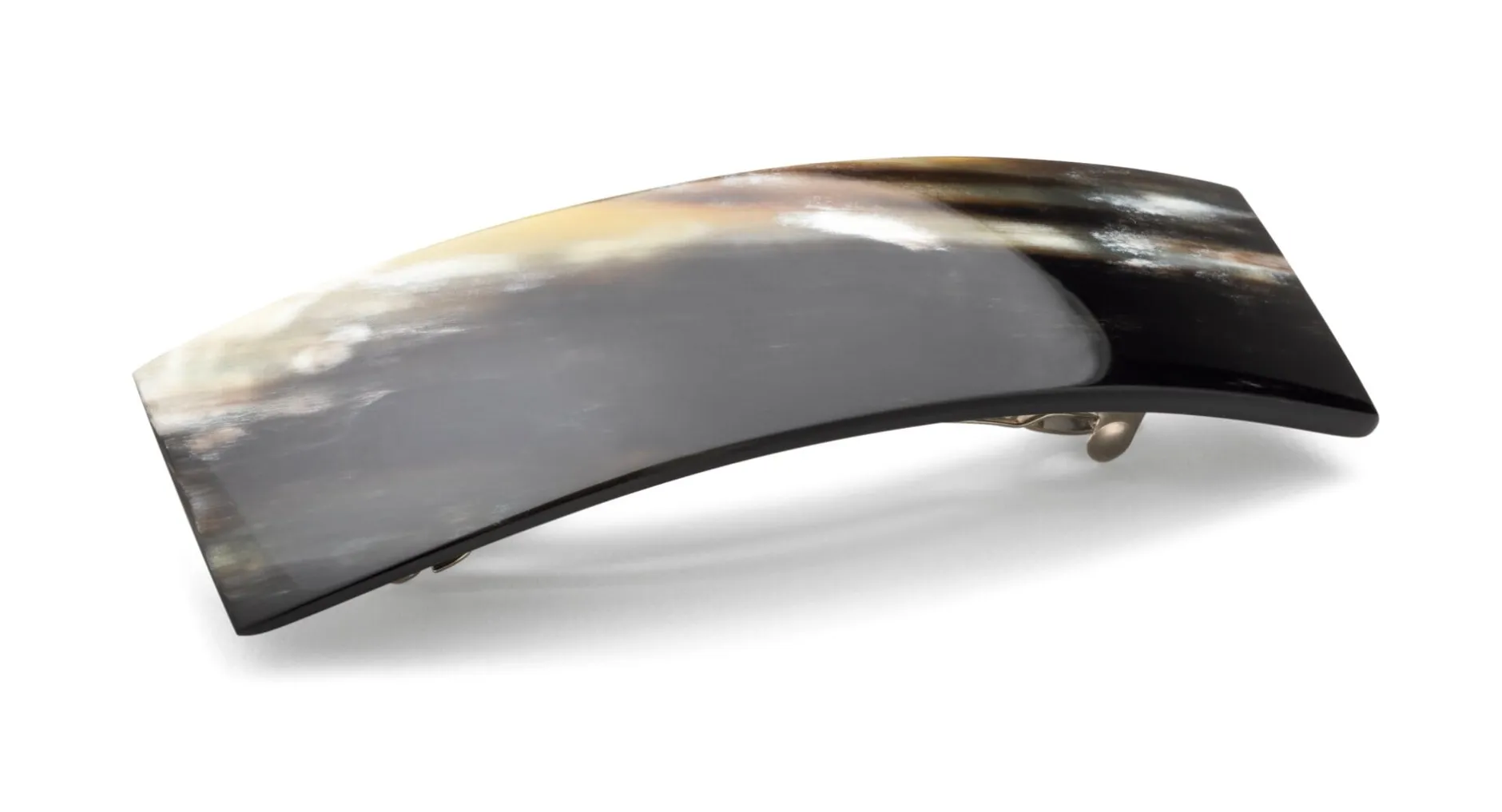 Deckplatte aus Horn (Materialstärke 2,5 mm bzw. 3 mm), Spange aus Metall.