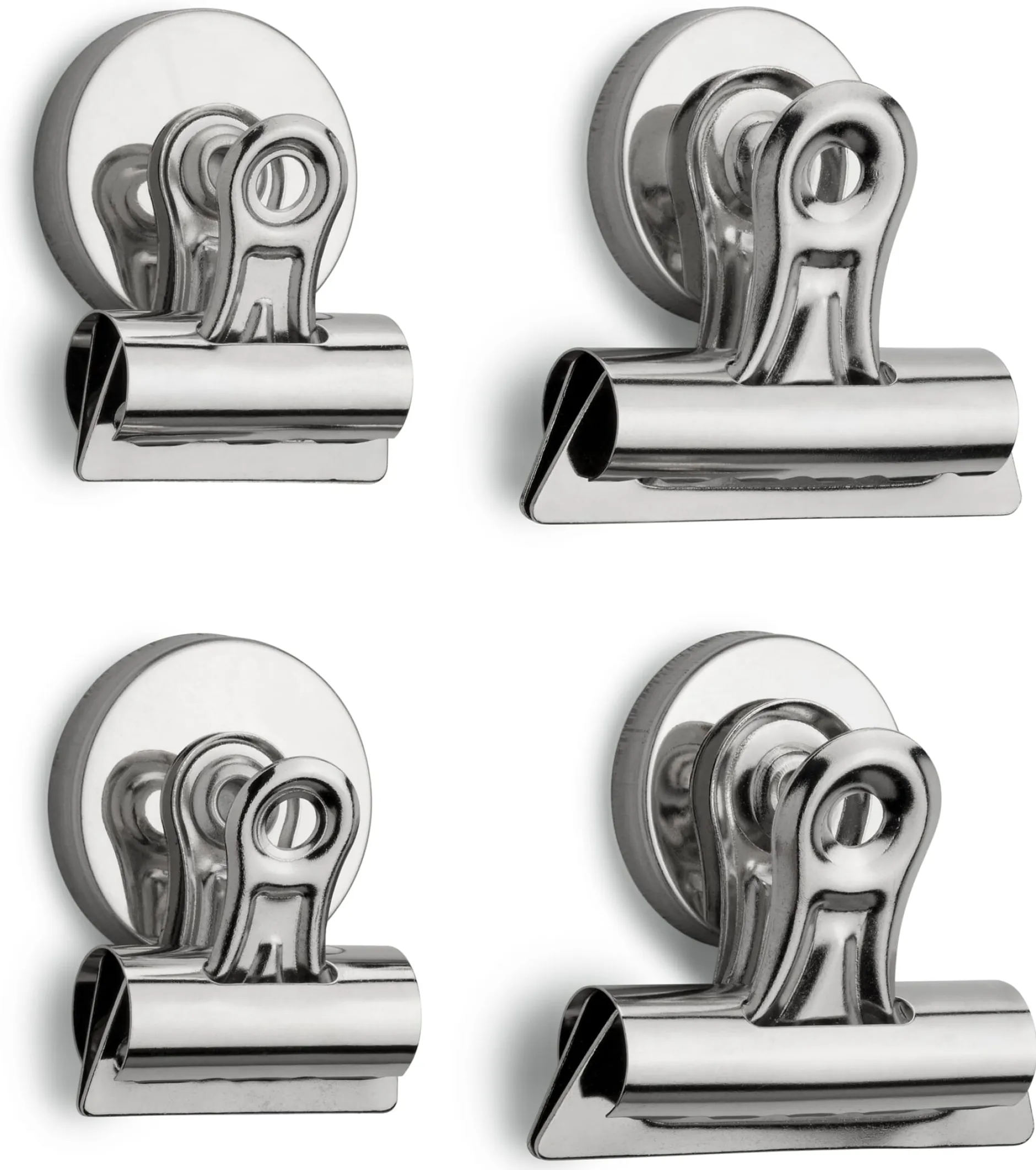 Je 2 große (Breite 57 mm) und 2 kleine (Breite 30 mm) Klammern. Magnete jeweils Ø 30 mm, Haftkraft 75 Newton.
