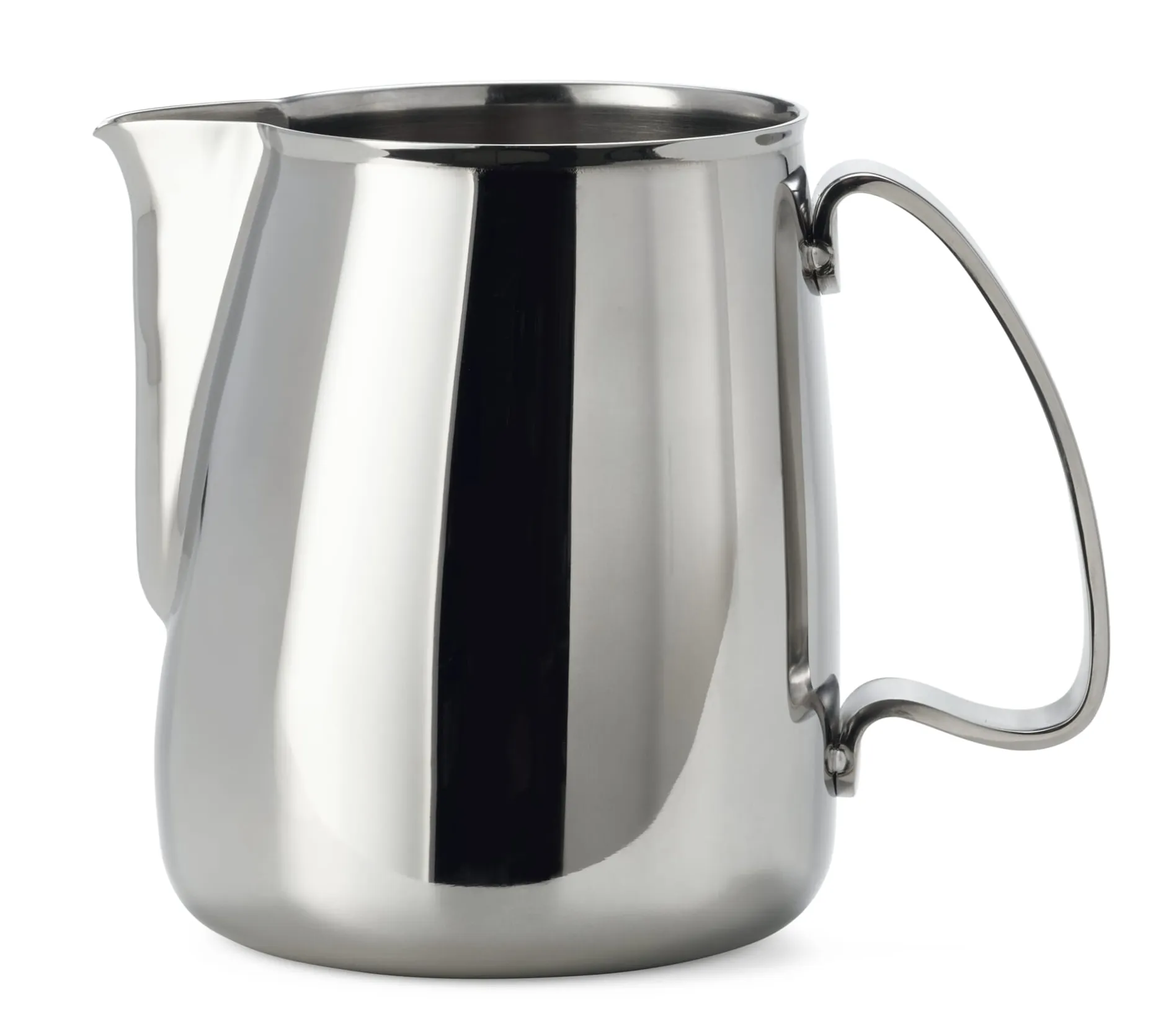 Italienische Baristas schätzen dieses Kännchen aus zwei Gründen sehr. Vor allem die Form der abgerundeten Schnaupe ist von Vorteil, die vollflächig ein wohldosiertes, tropffreies Ausgießen ermöglicht – so, dass die geschäumte Milch noch über die Seite leicht zu einem kleinen Kunstwerk in die Tasse gegossen werden kann. Zugleich sorgen die Beschaffenheit des Kännchenbodens und die ordentliche Wandstärke dafür, dass sich beim Erwärmen und Aufschäumen der Milch mit der Dampflanze der Barmaschine die Temperatur kontrolliert steuern lässt. Für das Ergebnis ist dieser zweite Faktor ebenso entscheidend, da die Flüssigkeit, wenn sie zu rasch erhitzt wird, nicht gut zu einem regelmäßigen Schaum aufgebaut werden kann.