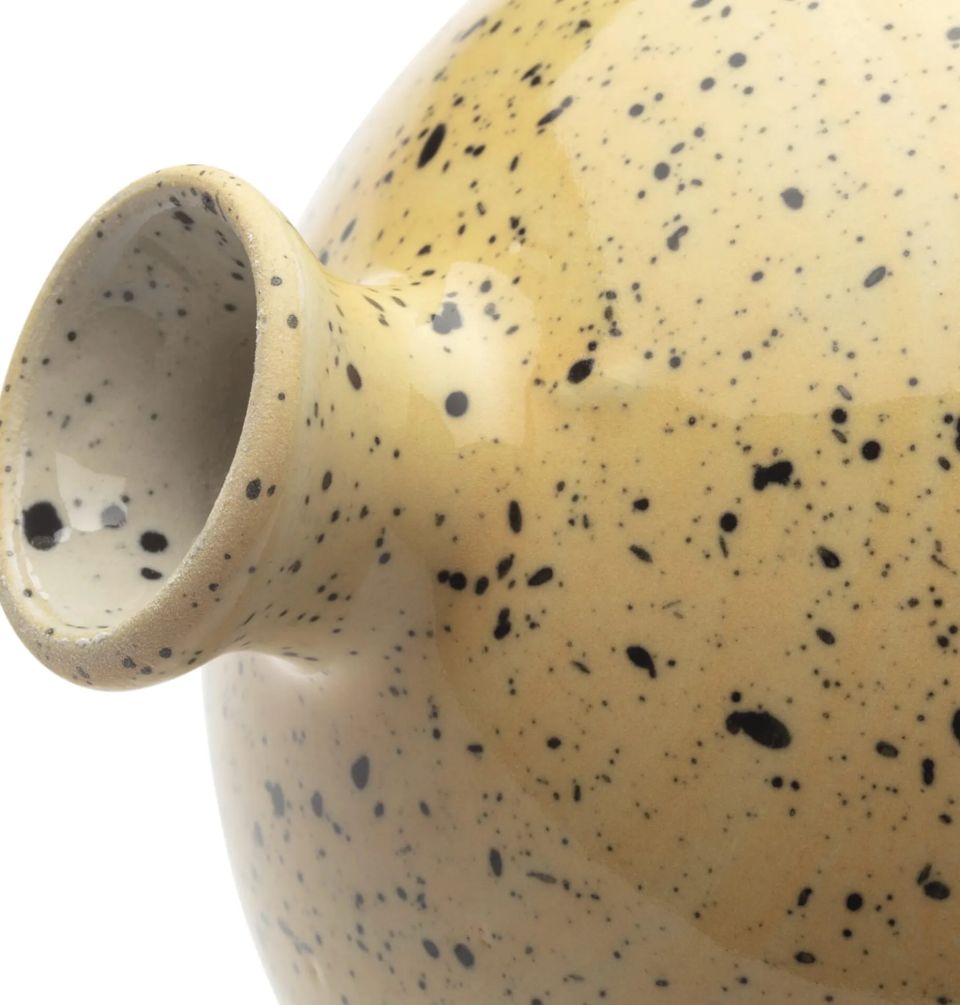 Keramik (Steinzeug) glänzend glasiert. Höhe 11 cm, Ø 9 cm. Öffnung Ø 1,5 cm. Gewicht 150–200 g. Hergestellt in Deutschland.