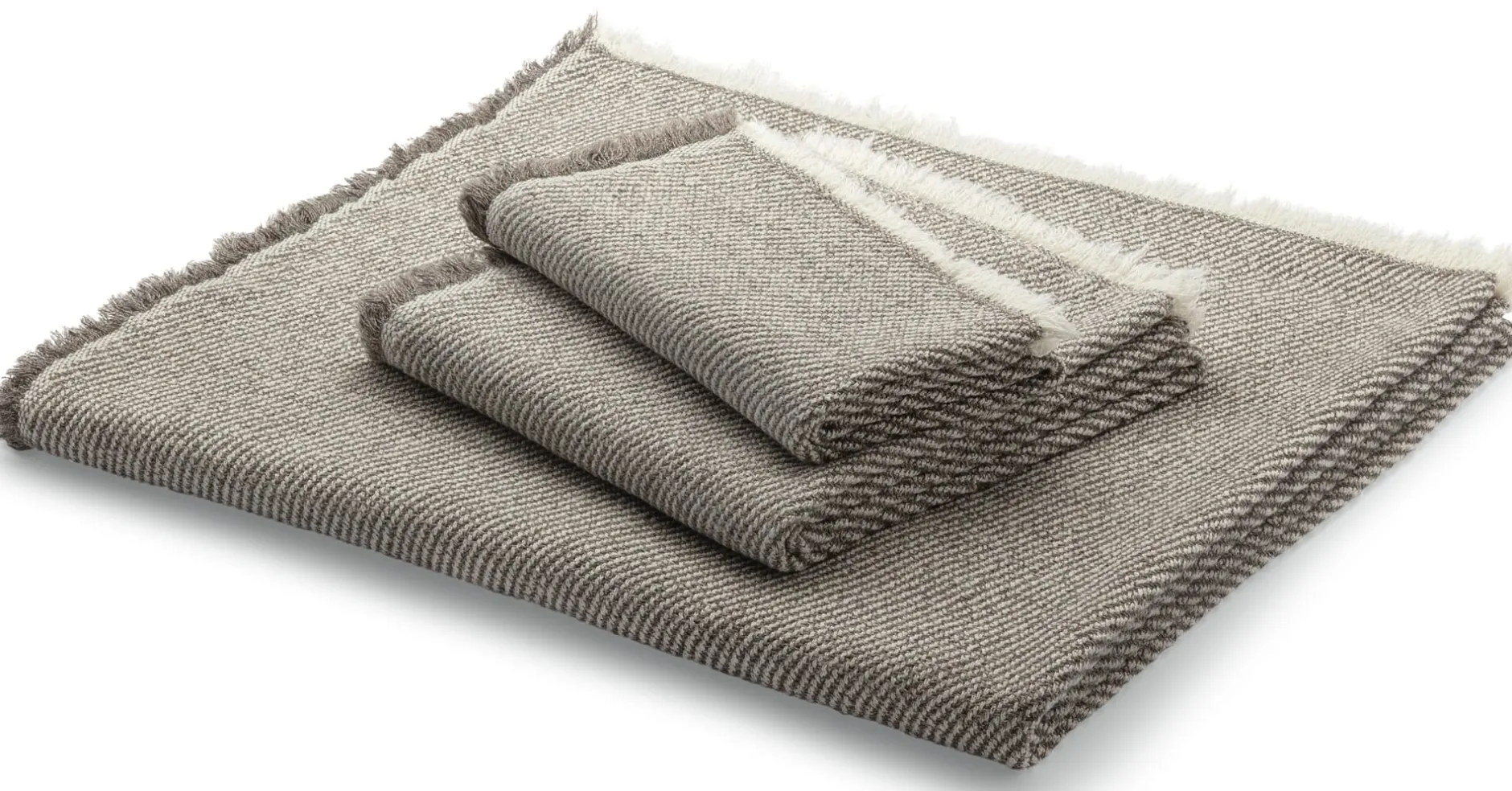 Ungewöhnlich für Handtücher ist die Webart in Köperbindung. Durch sie und aufgrund der Verwendung verschiedenfarbiger Garne entstehen bei diesen japanischen Handtüchern die feinen, diagonal verlaufenden Streifenmuster. Verwendet wird beste, reine Baumwolle, die den hohen Standards, die für „Imabari Towels“ gelten, entspricht. Mit einem Flächengewicht von 338 g/qm sind die Tücher leicht, dennoch saugfähig und sie trocknen auch schnell wieder – ideal für Reise, Strand oder Sauna. Sie haben einen eher körnigen Griff, was besonders angenehm beim Abtrocknen ist.