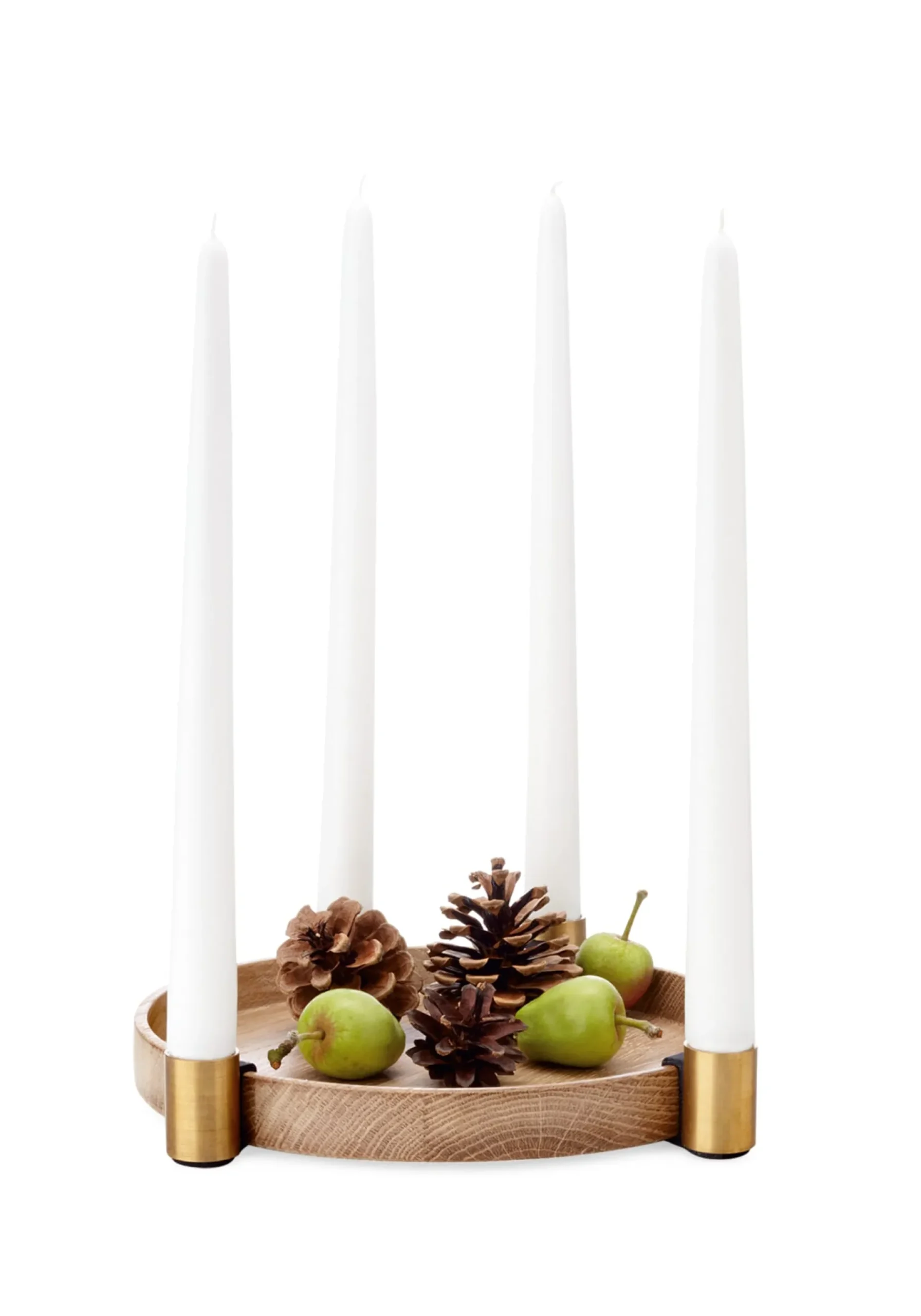 - Hölzernes Tablett mit an beliebiger Stelle ergänzbaren Kerzenhaltern