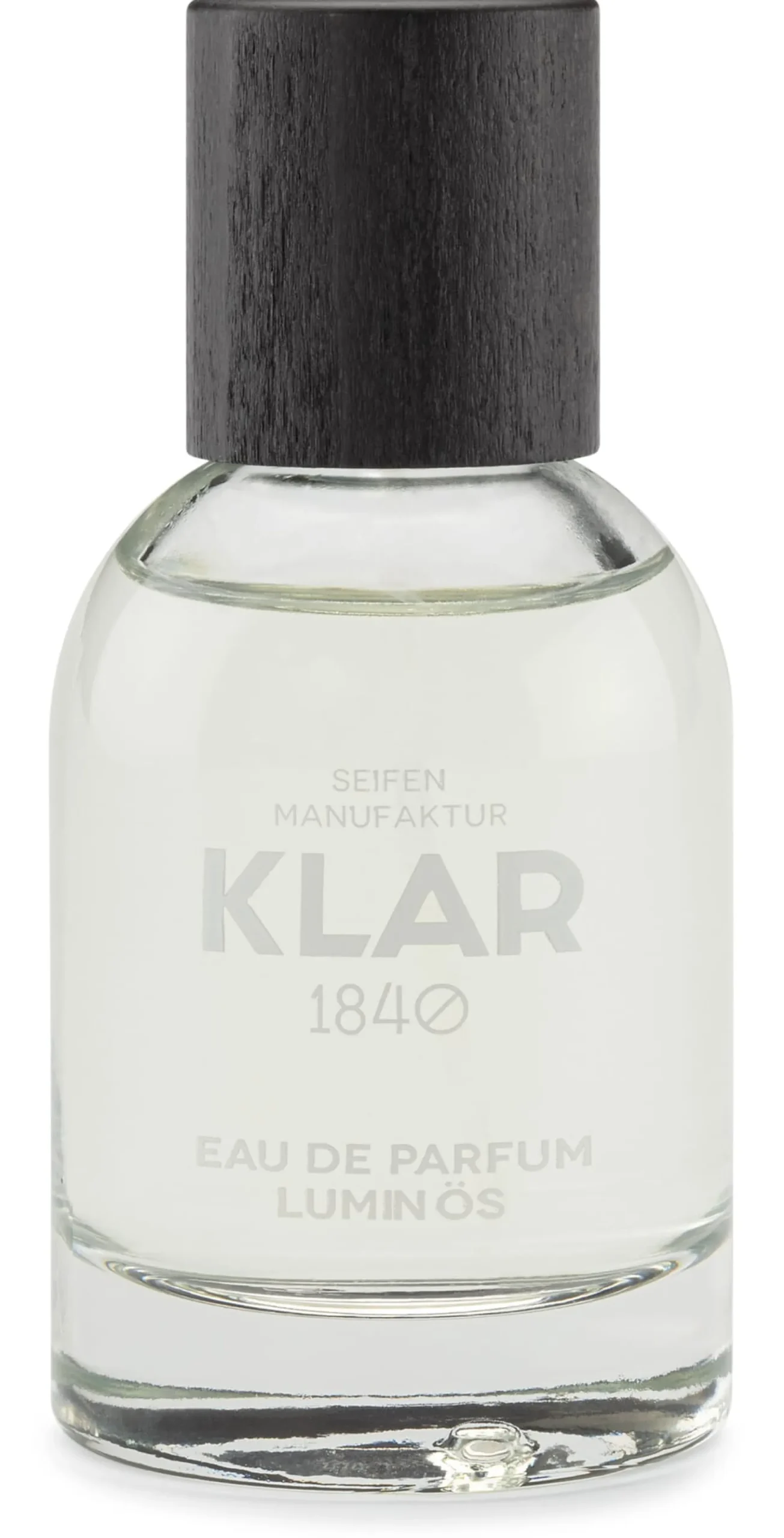 Leuchtend, strahlend, licht und hell – das französische „lumineux“ stand Pate für den Namen dieses Eau de Parfums – dem ersten Damenduft aus der Heidelberger Seifenmanufaktur Klar. So startet Luminös mit strahlender Bergamotte, Zitrone und Limette, flankiert von warmem Kardamom. Diesen frischen Noten folgen spritzig-würziger Ingwer, zitronig-waldiges Elemiharz und feine Lilienblüten, die dem Parfüm eine dezente florale Note verleihen. In der Basis entfalten sich würzige Muskat- und Sandelholznoten sowie Moschus.