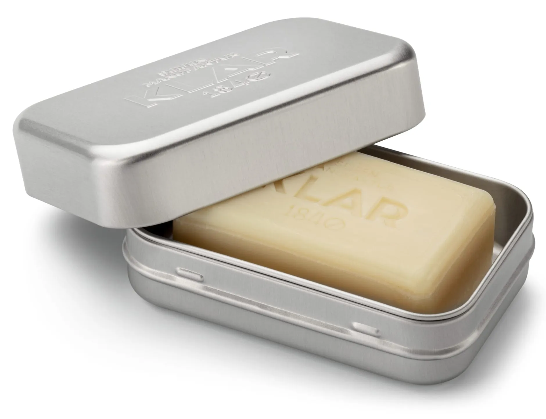Klar Seifen auf Reisen. In auslaufsicherer Seifendose