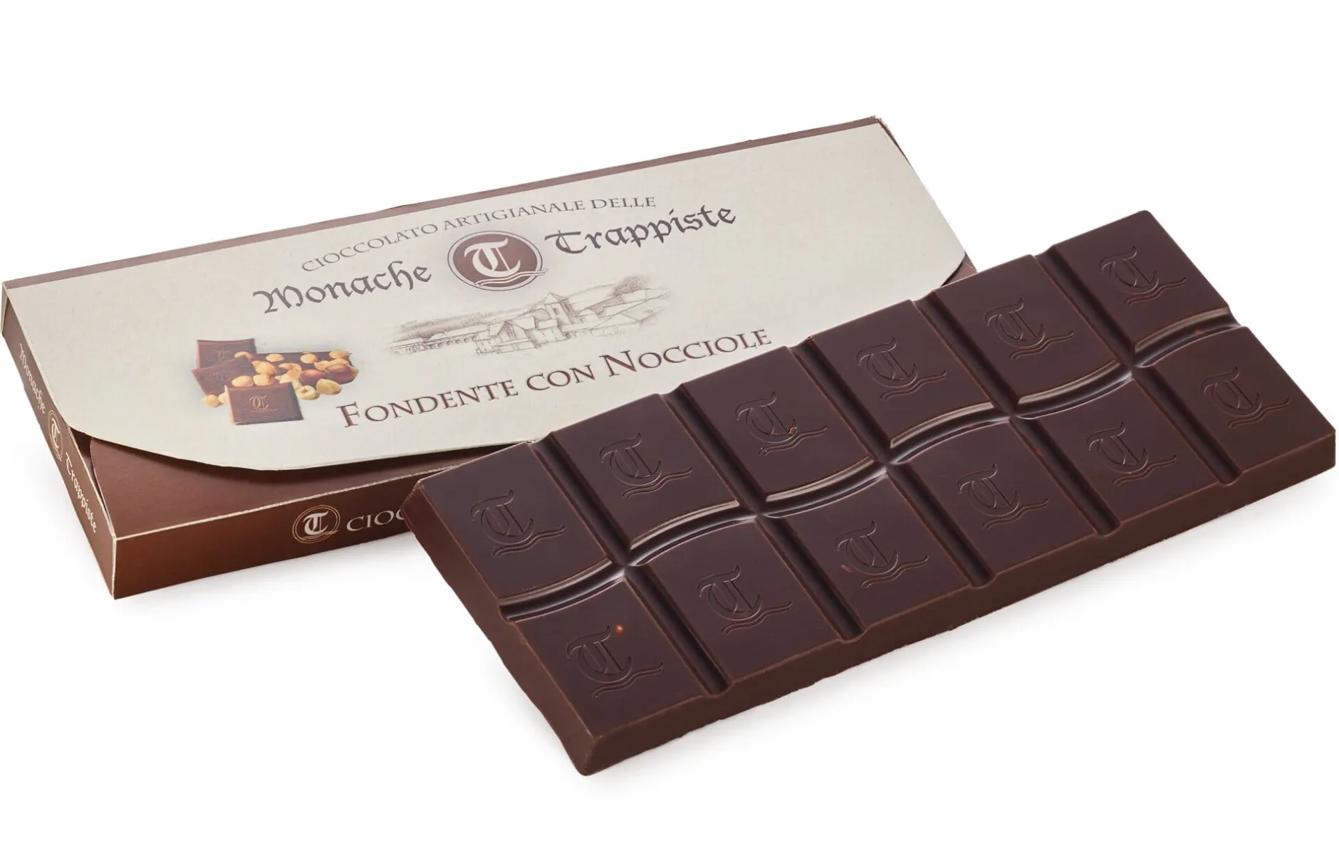 Für diese Zartbitterschokolade verarbeiten die tschechischen Trappistinnen belgische Rohschokolade bester Qualität nach ihrem eigenen Geschmack. Je nach Sorte verfeinern sie die Schokolade mit würzenden Beigaben – in diesem Fall mit aromatischen Haselnüssen.