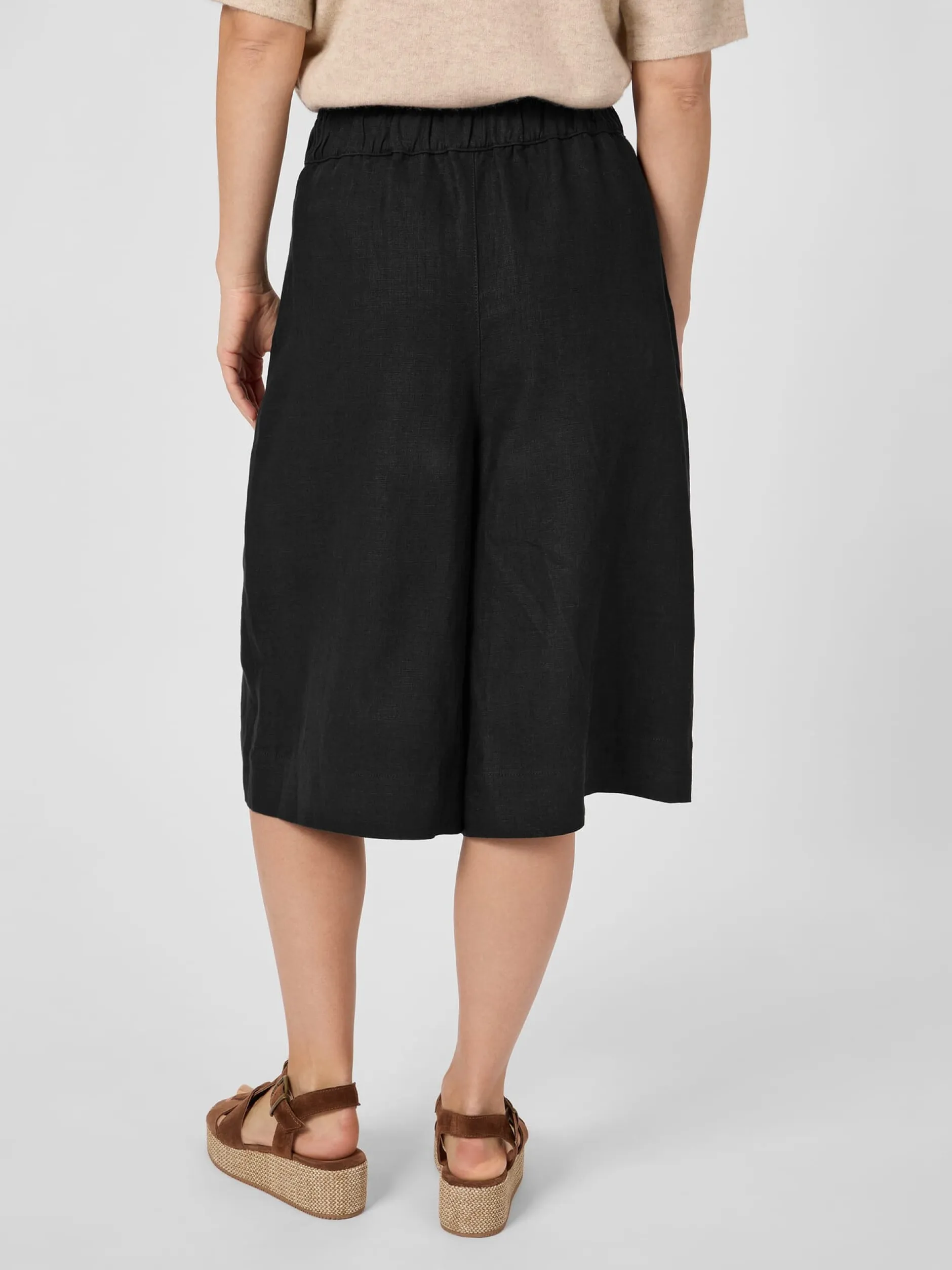 Diese bequeme Bermudahose überzeugt in Material und Schnitt. Knowledge Cotton Apparel konfektioniert sie aus kontrolliert biologisch angebautem Leinen. Das leichte und strapazierbare Gewebe zeigt materialtypisch eine leicht unregelmäßige Struktur und eine schöne Melangeoptik. Tragefreundlich ist es noch dazu, denn da die Flachfaser viel Feuchtigkeit aufnehmen und schnell wieder ableiten kann, sind Leinenstoffe besonders atmungsaktiv und liegen leicht kühlend auf der Haut. Gearbeitet ist die verschlusslose Bermudahose in legerer Passform, mit sehr weitem Bein und elastischem Bund. Zwei Seitentaschen bieten Platz für Kleinteile des täglichen Bedarfs.
