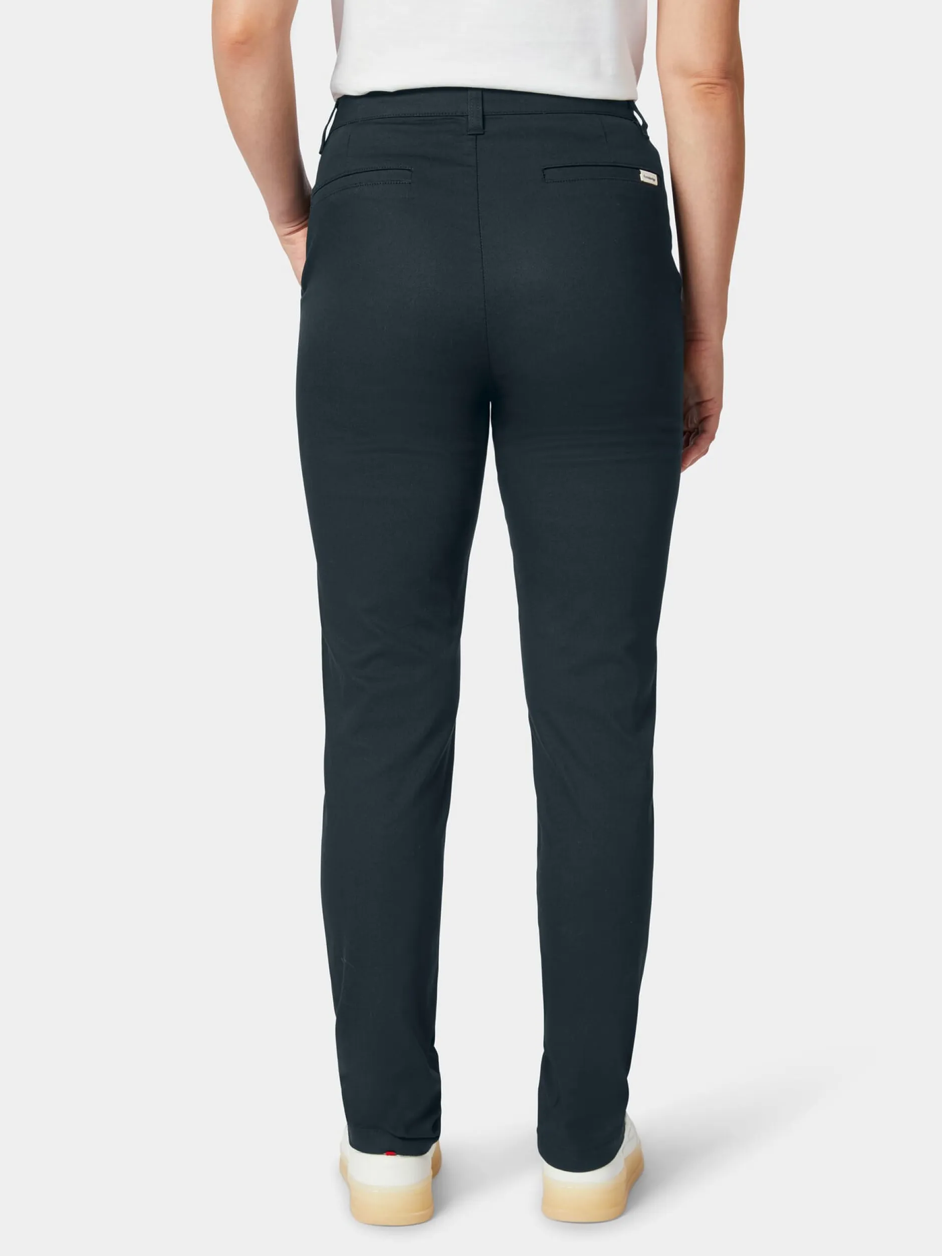 Klassische Chino mit geradem, eher schmal gehaltenem Bein – ein Basisstück, das sich mit vielen Outfits kombinieren lässt. Knowledge Cotton Apparel fertigt sie aus hautsympathischer, kontrolliert biologisch angebauter Baumwolle. Etwas Elastan verleiht dem Gewebe mehr Elastizität und Formtreue. Das Material wird hier zu einem Piqué verarbeitet, einem strapazierbaren Doppelgewebe mit waffelartig anmutender Struktur und griffiger Haptik. Gearbeitet ist die Chino mit zwei Seitentaschen und zwei blinden Gesäßtaschen. Sie wird mit Reißverschluss und Knopf geschlossen.