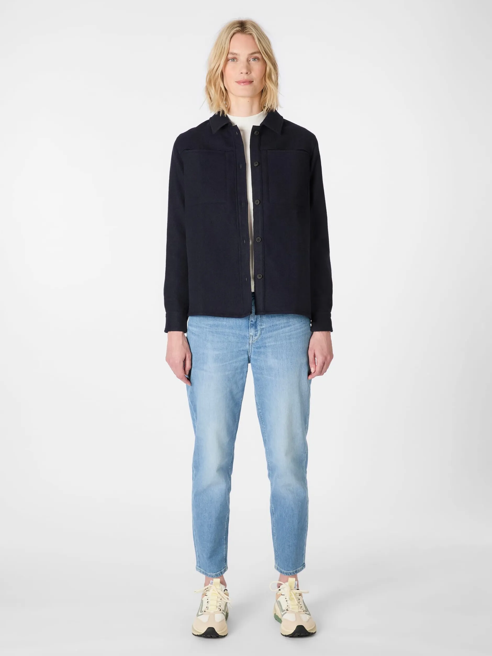 Klassische Hemdjacke in geradem Schnitt – geradezu ideal für die Übergangszeit, kann sie doch als Solitär, aber auch wie ein Hemd unter einer Jacke getragen werden. Das kräftige, dichte Gewebe zeigt einen markanten Köpergrat und ist besonders strapazierbar und langlebig. Es schenkt an kalten Tagen die notwendige Wärme und schützt vor kühlen Winden, gleichzeitig ist es temperaturausgleichend und atmungsaktiv. Die Ärmel sind mit einem Futter aus kontrolliert biologisch angebauter Baumwolle versehen, was für zusätzlichen Tragekomfort sorgt – gerade, wenn Sie ein kurzärmliges Shirt unter der Jacke tragen möchten und ein wenig empfindlich auf Wolle reagieren. Ausgestattet ist die Hemdjacke mit zwei Brusttaschen, einer Schulterpasse vorn und hinten und geknöpften Manschetten.