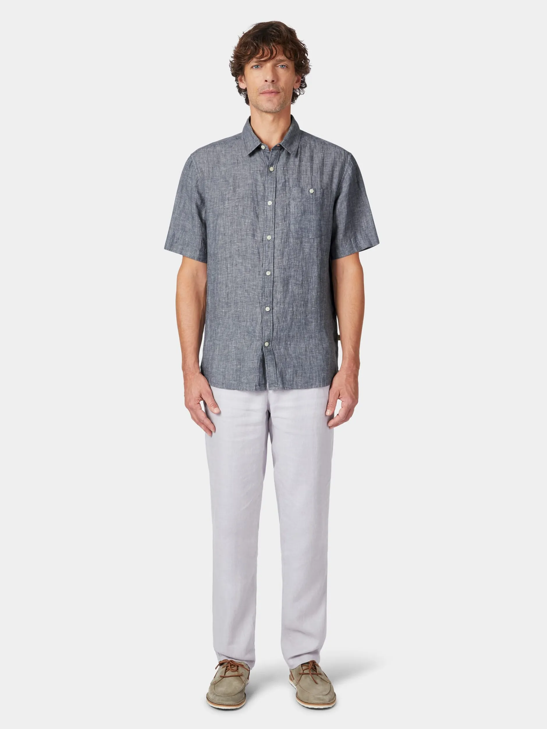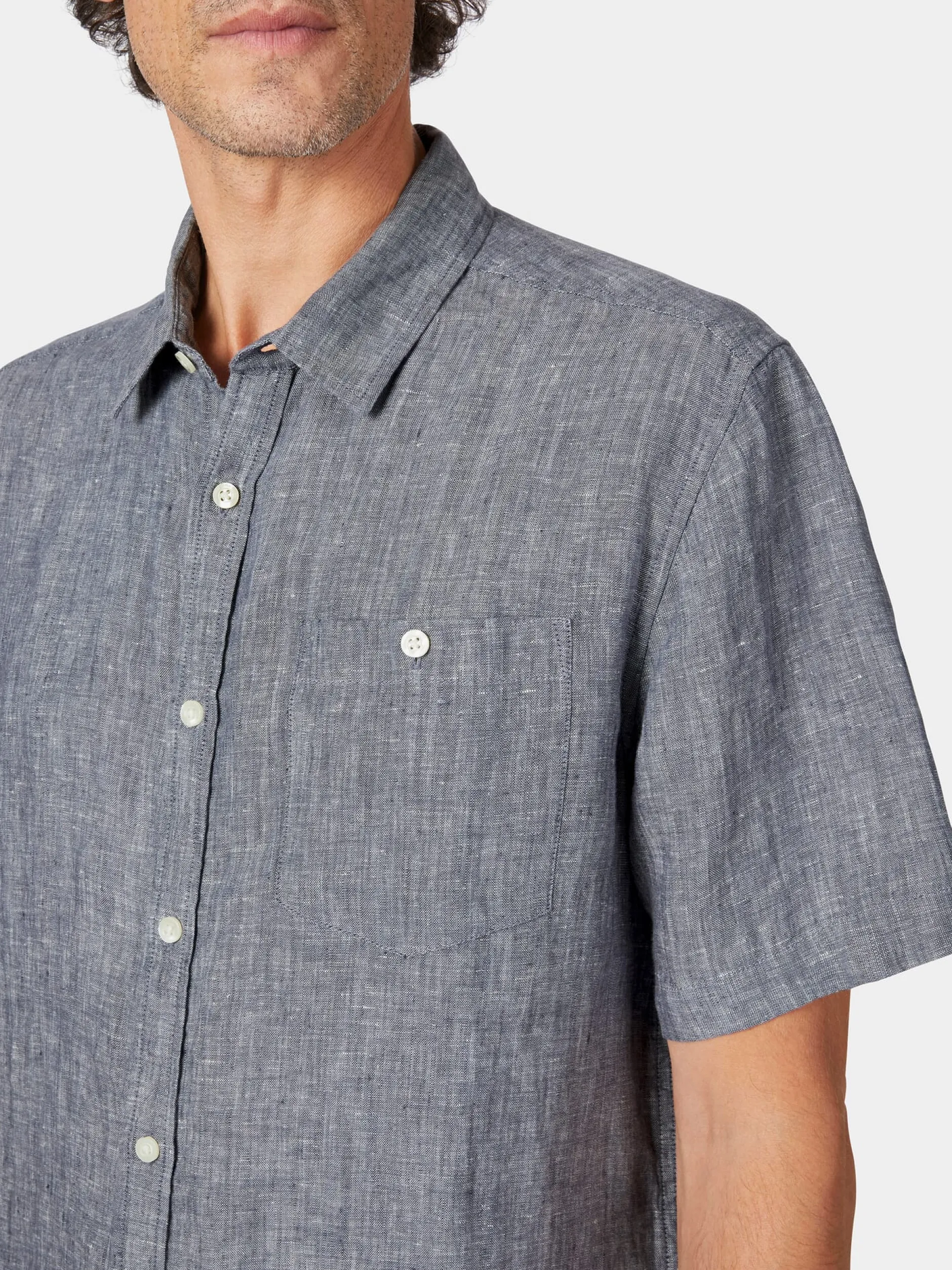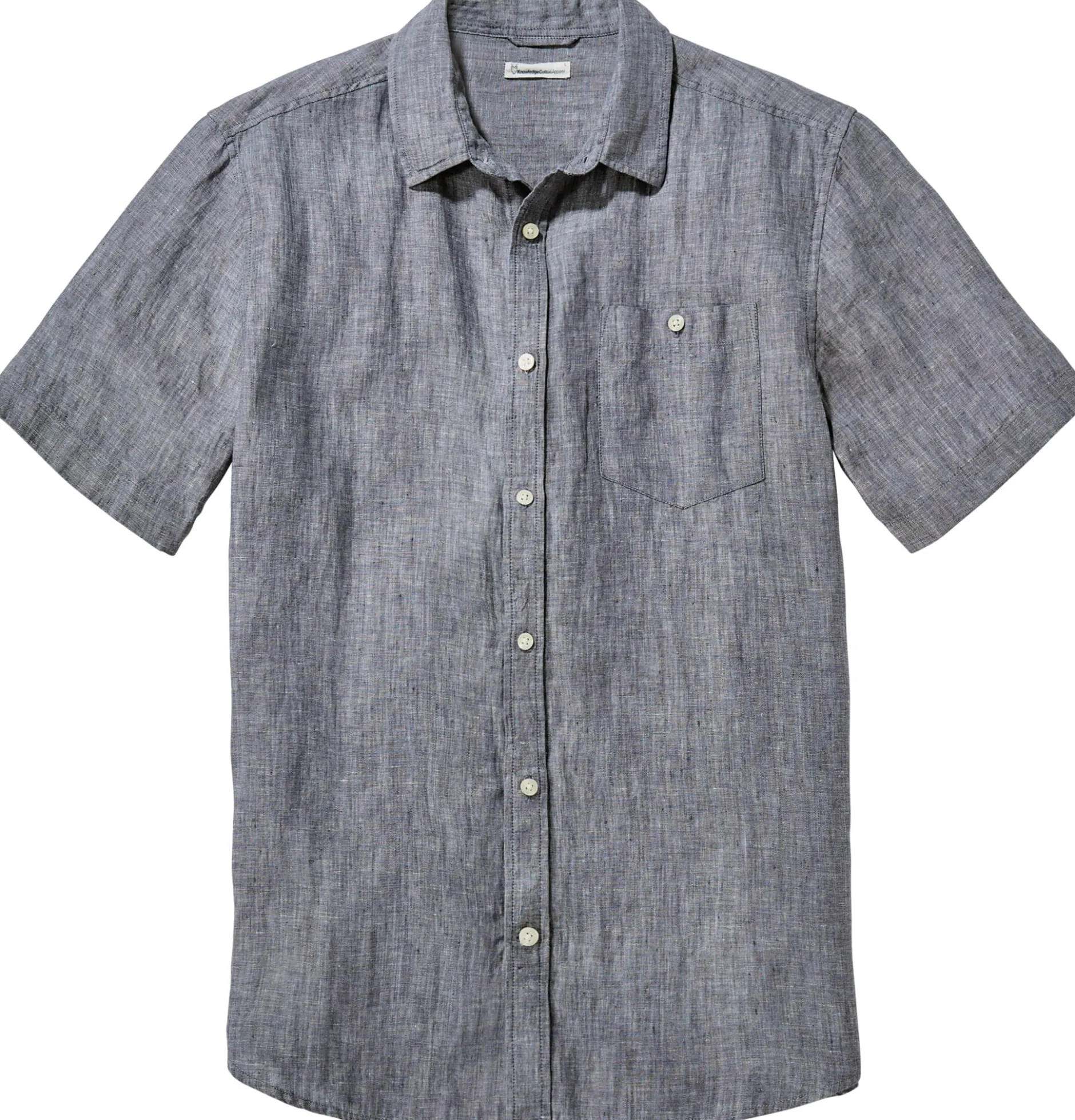 Leinenhemden tragen sich durch ihre atmungsaktiven und kühlenden Eigenschaften selbst bei hohen Temperaturen angenehm. Doch auch optisch überzeugt Leinen: materialtypische Fadenverdickungen und ein schöner Melangeeffekt sorgen für einen markanten Look. Knowledge Cotton Apparel fertigt dieses sommerliche Halbarmhemd mit Kentkragen und aufgesetzter, geknöpfter Brusttasche. Quetschfalten unter der Schulterpasse erhöhen den Tragekomfort. Die Flachsfasern für den Stoff stammen aus kontrolliert biologischem Anbau.