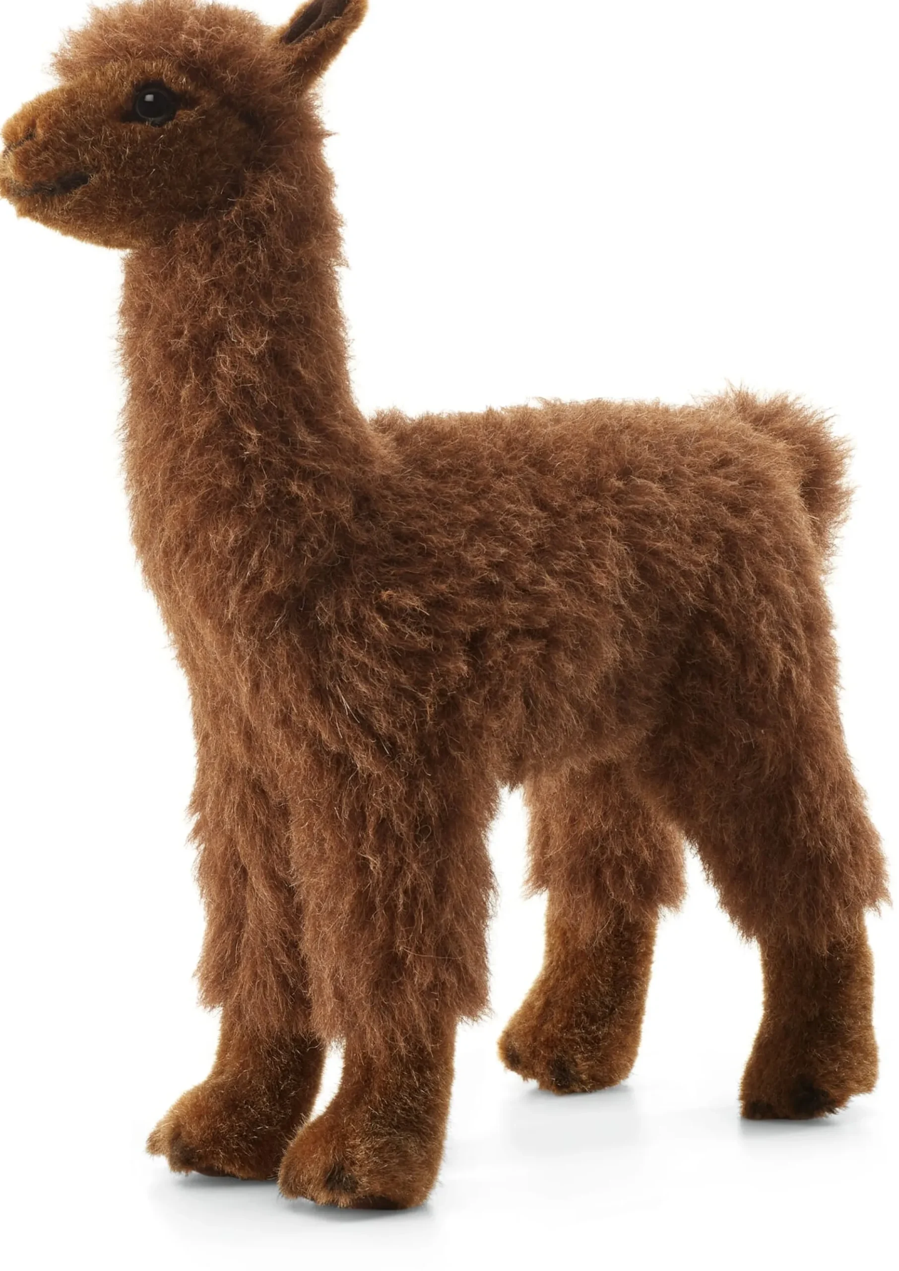 Fell Alpakahaar, Gesicht und Füße Webplüsch. Hergestellt in Deutschland. Länge 27 cm, Breite 8 cm, Höhe 28 cm. Gewicht 130 g.
