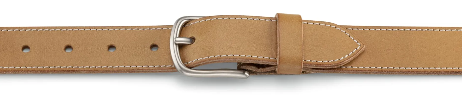 In der Ledermanufaktur Kreis entsteht dieser markante Gürtel, der aus zwei Lagen feinster Leder flach und offenkantig gearbeitet wird. Für das Oberleder wird ein vegetabil gegerbtes Kalbleder aus Italien verwendet, das durch den Vorgang des „Glanzstoßens“ ein seidenmattes Finish erhält. Das Innenleder ist ein kräftiges, grubengegerbtes Blankleder aus der deutschen Gerberei Kobel in Kellinghusen. Das naturfarbene Leder wird an der Gürtelkante mit einem farblosen, transparenten Wachs poliert, wodurch der Gürtel einen lässigen und sportiven Charakter erhält. Gürtel, die in dieser Machart gefertigt werden, werden auch als „Sneakergürtel“ bezeichnet. Dank des hohen Fettgehalts des Innenleders wird der Gürtel bereits nach kurzer Eintragezeit besonders geschmeidig. Ausgestattet ist er mit einer vernickelten und gebürsteten Vollmessingschließe aus Italien.