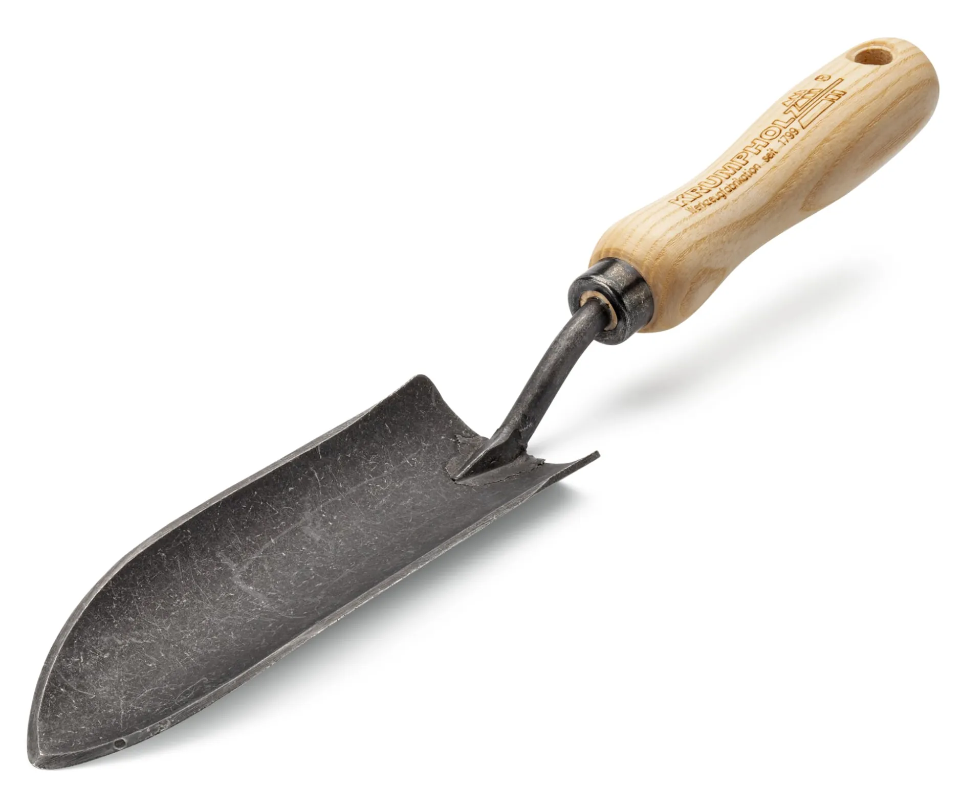 In dieser schmalen Ausführung ist die Pflanzkelle für vielerlei Arbeiten geeignet. Wie eine Schaufel geformt, lässt sie sich verwenden, um beim Bepflanzen von Töpfen und Kübeln Erde in die Gefäße einzufüllen – und das (fast) ohne Krümeln und Kleckern. Die geschärfte Spitze verrät: Ebenso gut vermag dieses Werkzeug mit seinem langen geschmiedeten Blatt Pflanzlöcher auszuheben sowie tief wurzelndes Unkraut vollständig zu erfassen und auszustechen. Gerade in dicht bewachsenen Beeten, aber auch im Hochbeet- oder Balkonkasten gelingt dies, ohne benachbarte Pflanzen zu beeinträchtigen.