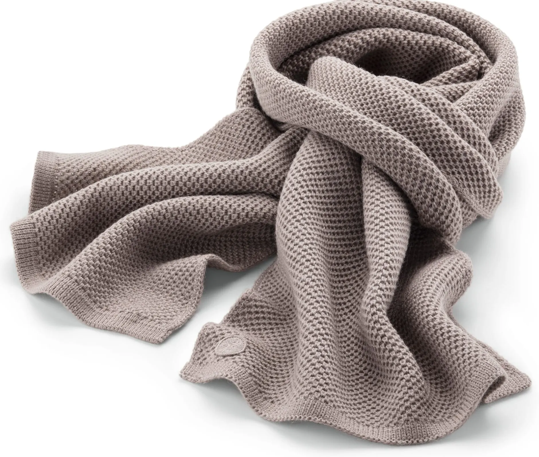 Dieser fransenlose Schal liegt weich und wärmend auf der Haut. Das plastische Gestrick ist aus reiner Schurwolle gearbeitet und zeigt ein griffiges Perlmuster. An den Enden bilden feine Rippenstrickbündchen den Abschluss. Die verwendete Schurwolle stammt aus kontrolliert biologischer Tierhaltung.