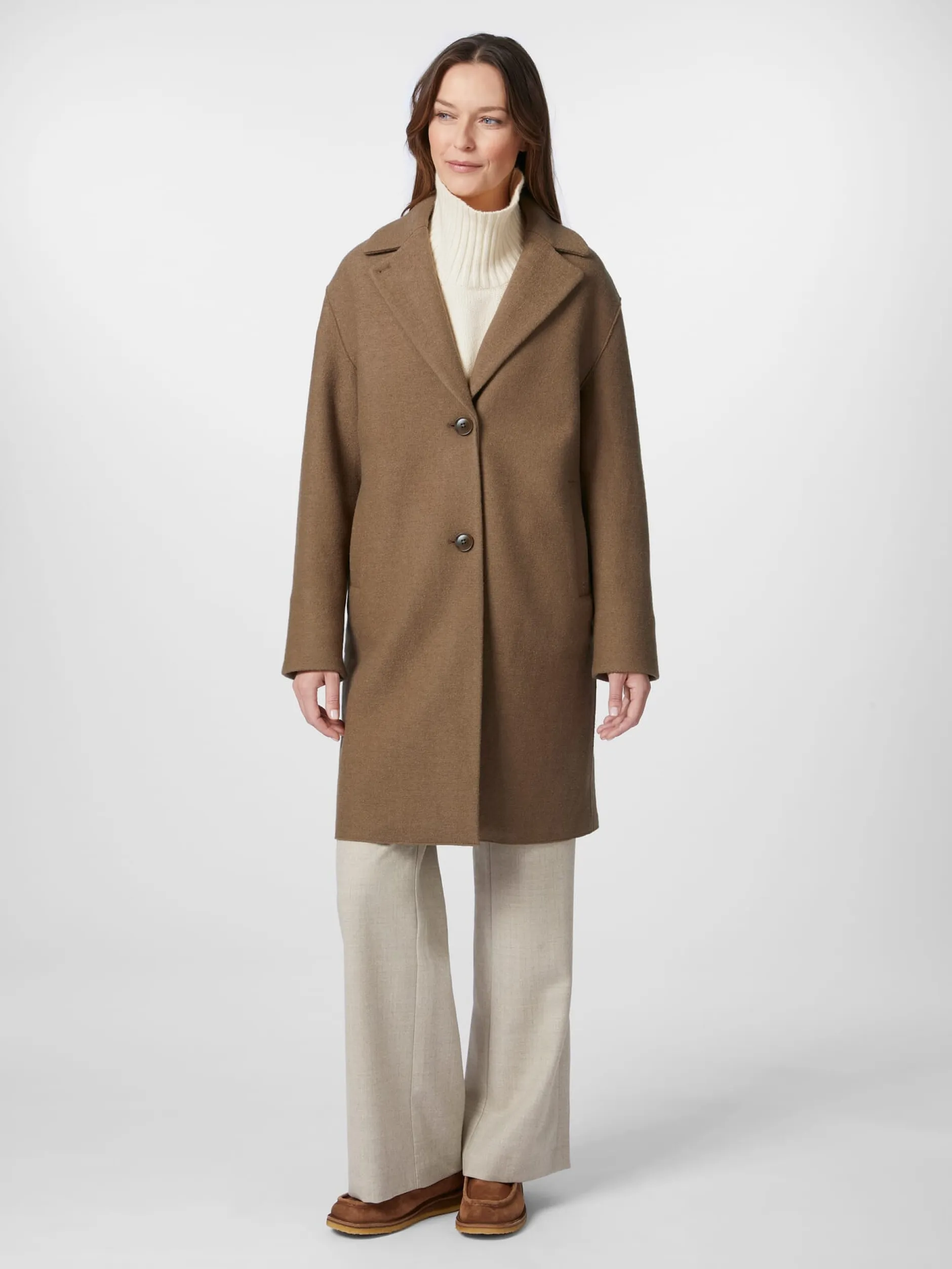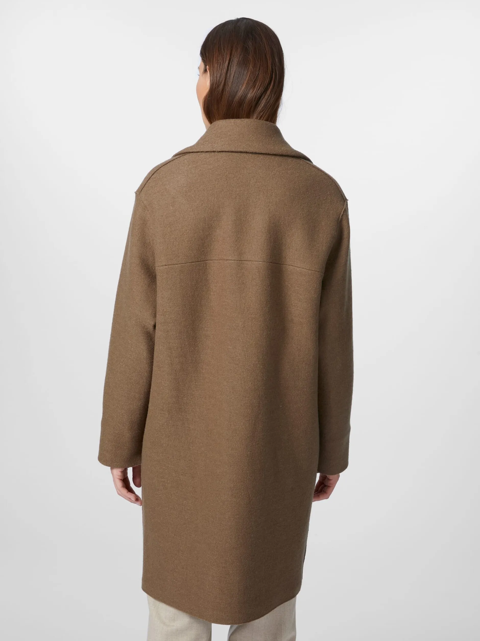 Schlicht schön und bequem ist dieser Mantel, den LangerChen aus reiner Schurwolle fertigt. Das Besondere an dem verwendeten Material ist nicht nur, dass es sich hier um Schurwolle aus kontrolliert biologischer Tierhaltung handelt, sondern auch, dass die Wolle gekocht ist. Durch die Einwirkung von Wasser und Wärme erhält das Manteltuch seine weichen, dichten und besonders wärmenden Eigenschaften. Gleichzeitig wird das Wollgewebe durch diesen mechanischen Veredelungsprozess wasserabweisend und bleibt dennoch – das ist der Unterschied zu gewalkten Geweben – sehr elastisch. Im Schulterbereich ist das Material gedoppelt, wodurch Wärmefunktion und Wetterschutz erhöht werden. Ausgestattet ist der Mantel mit zwei Seitentaschen, Belüftungsösen unter den Achseln und kurzen Ärmelschlitzen. Das glatte Ärmelfutter aus reinem Lyocell (TENCEL™) erleichtert das An- und Ausziehen. Der Saum ist innen mit einem Stoßband verstärkt, was ihm mehr Stabilität gibt.
