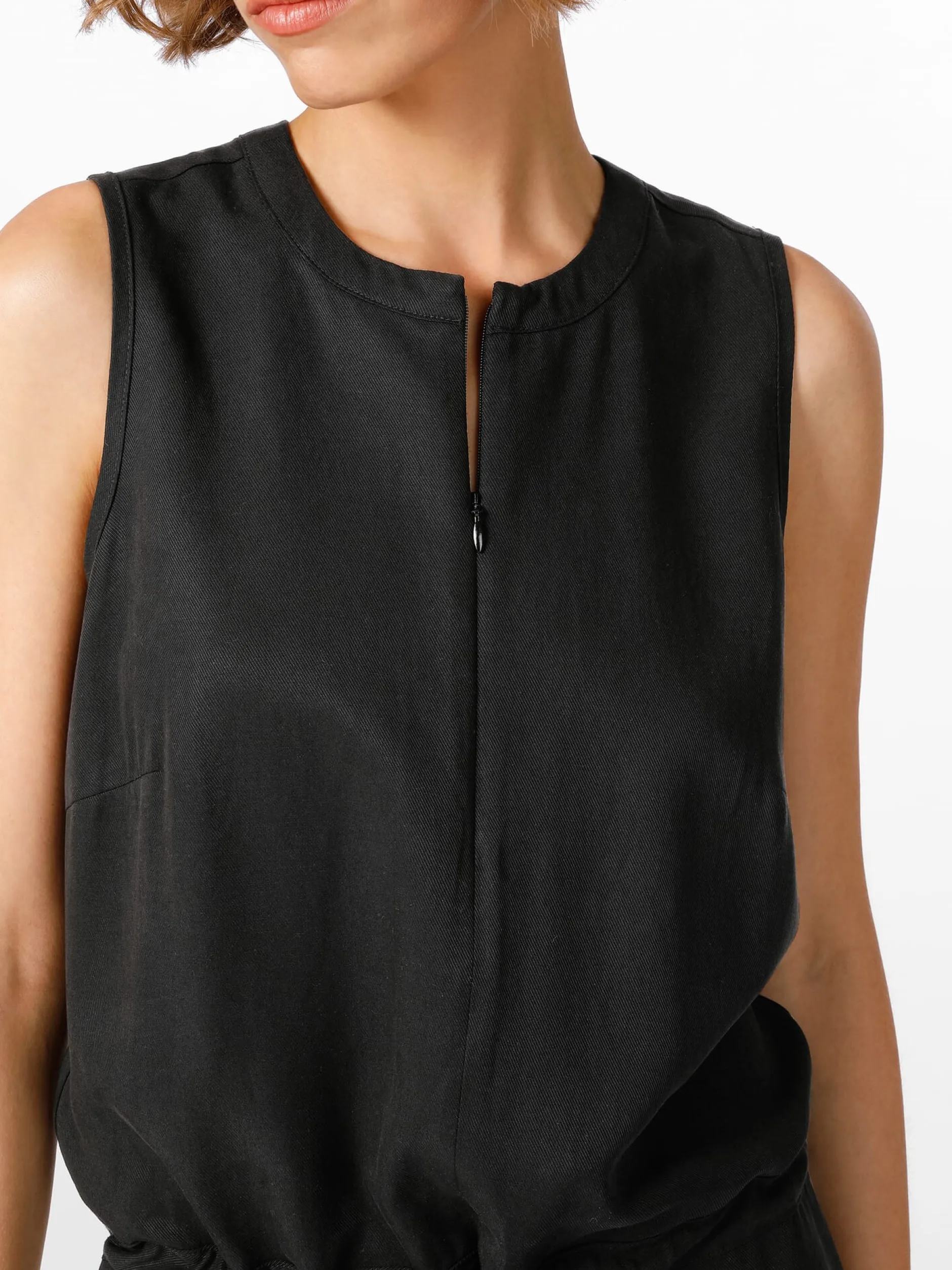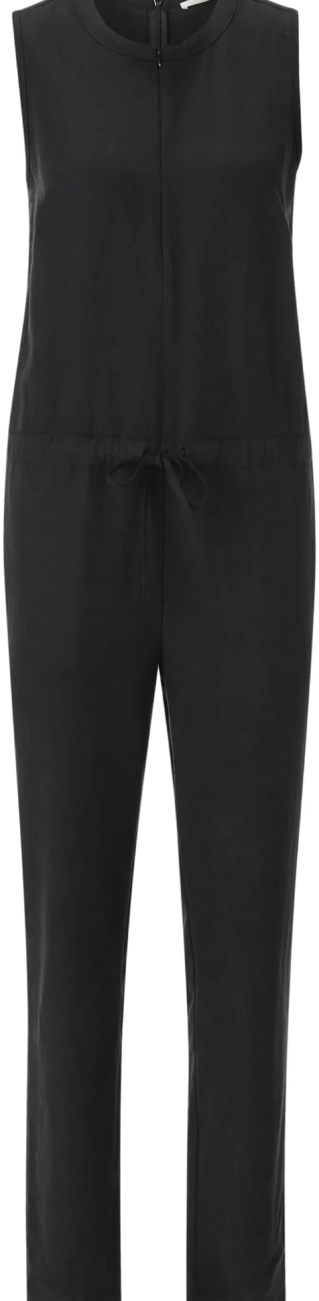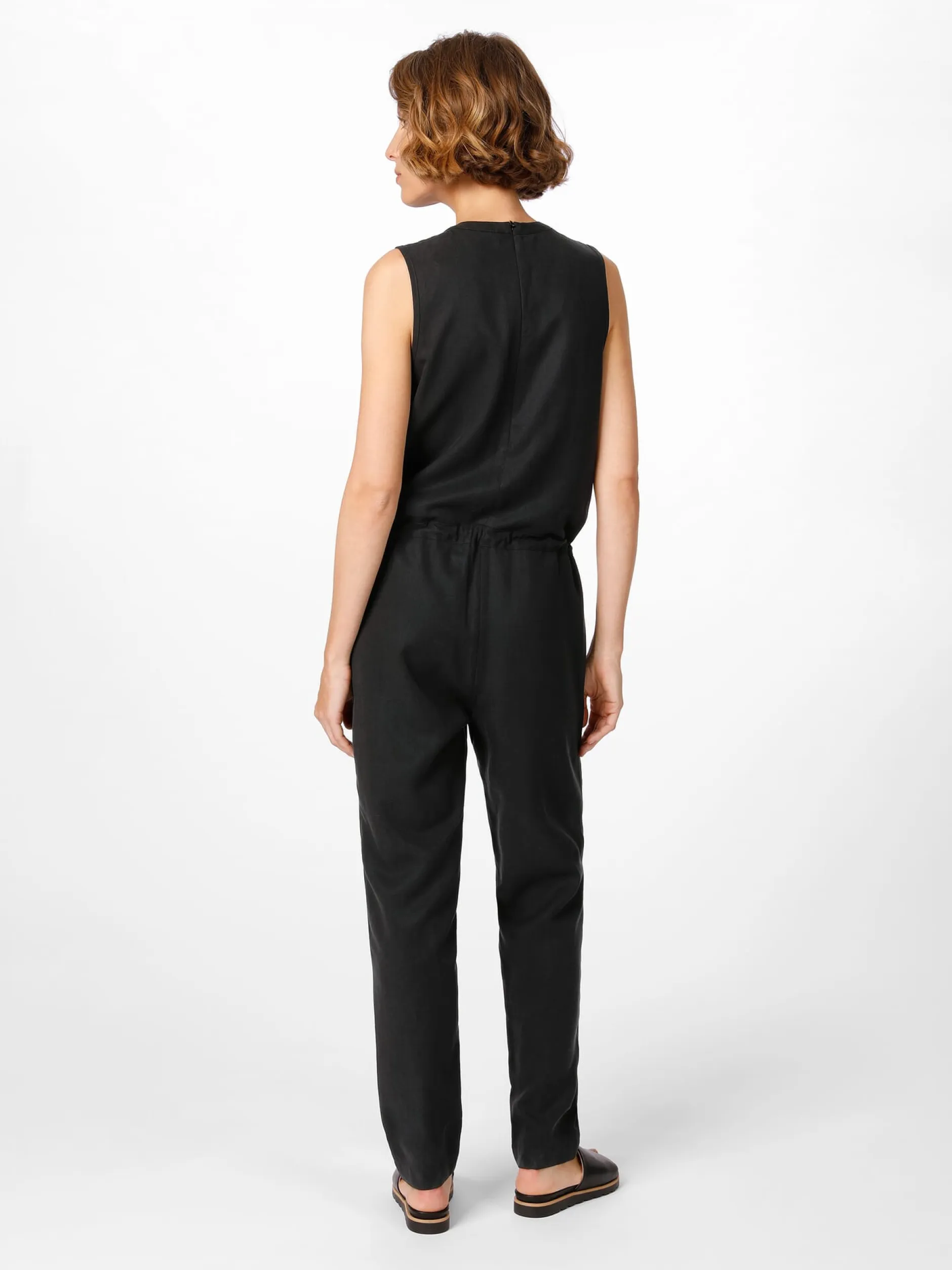 Der Jumpsuit ist ein faszinierendes Kleidungsstück: Ursprünglich als praktische Arbeitskleidung für Fallschirmspringer*innen entwickelt (daher der Name), tauchten modische Abwandlungen bereits in den 1930er Jahren in der Damenbekleidung auf. In den 1960er und 1970er Jahren etablierte er sich und wurde sogar zu einem Symbol für die feministische Bewegung, da er als Ausdruck von Gleichheit und Unabhängigkeit galt. Nachdem der Jumpsuit dann in den 1980er Jahren zum beliebten Disco-Outfit avancierte, erlebte er in den vergangenen Jahren eine weitere Renaissance. Lanius fertigt diesen ärmellosen Jumpsuit aus Lyocell und Leinen, wodurch er weich im Griff ist, einen fließenden Fall hat und sich durch Tragefreundlichkeit auszeichnet. Der Jumpsuit ist mit einem langen Reißverschluss hinten und einem Reißverschluss vorn zum Modifizieren des Ausschnitts ausgestattet – beide sind nahtverdeckt eingesetzt. Ein Bindeband im Tunnelzug auf Taillenhöhe gibt dem Jumpsuit Figur. Zwei Seitentaschen nehmen Kleinteile des täglichen Bedarfs auf.
