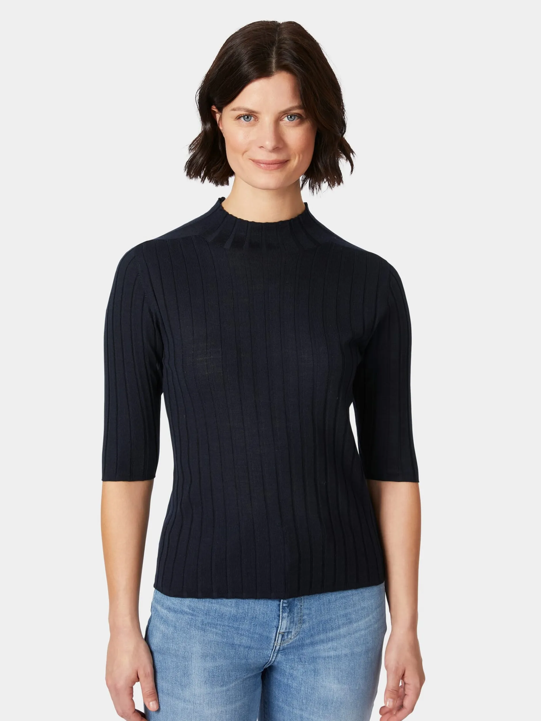 Anschmiegsamer Rippenstrick. Aus kbT-Schurwolle
