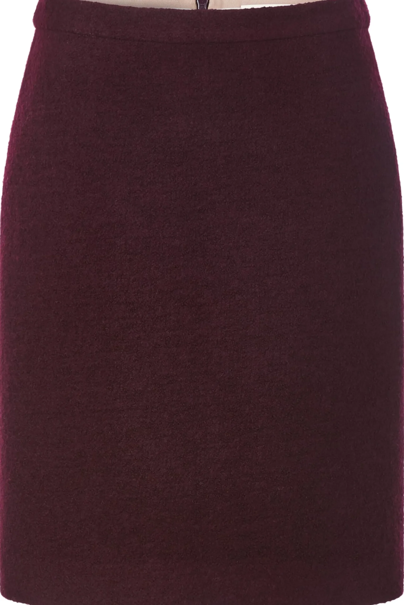 62% Schurwolle, 38% Baumwolle. Futter 100% Viskose. Kunststoffreißverschluss. Hergestellt in China. Rocklänge bei Größe 38 = 52 cm.