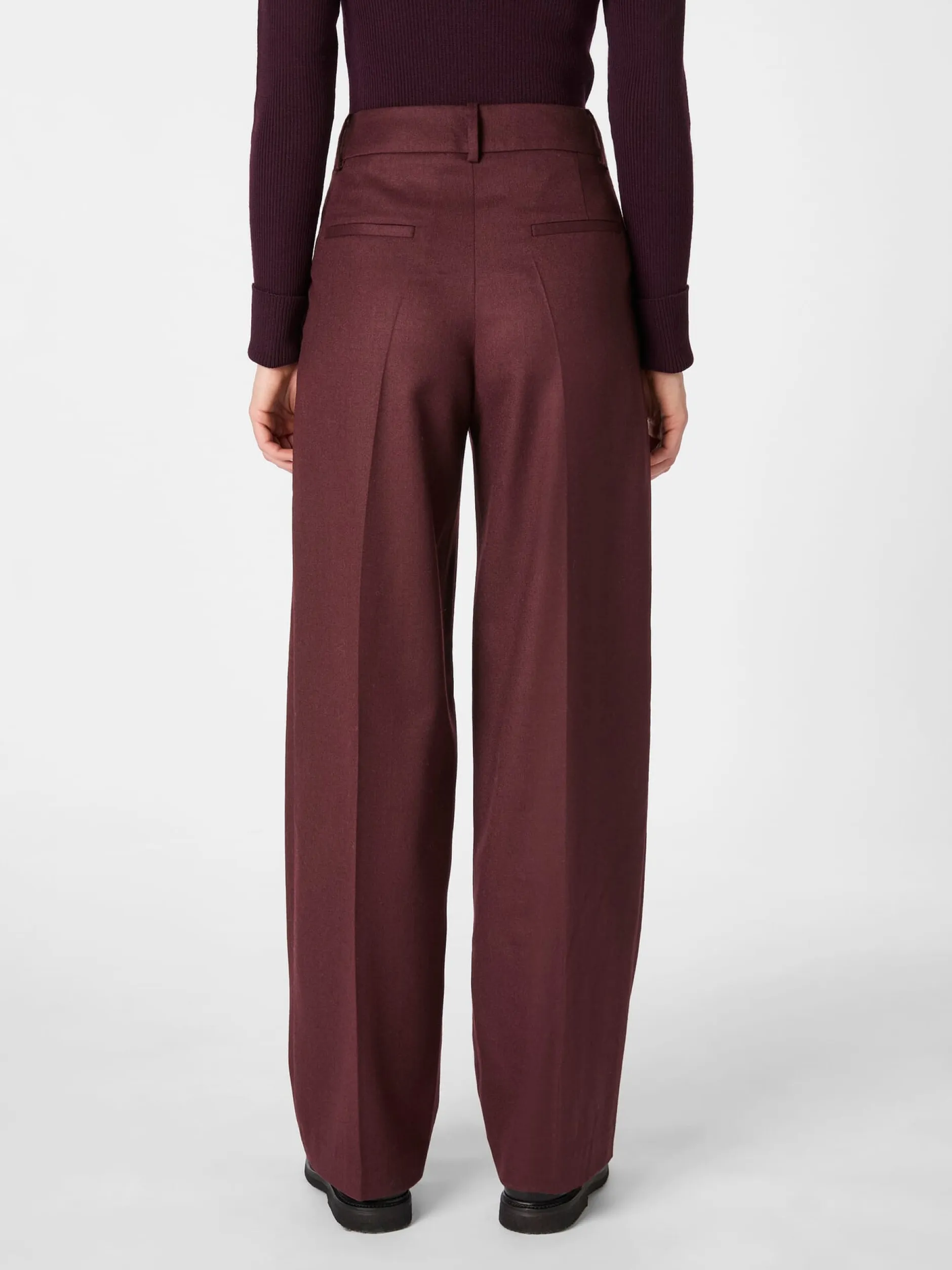 Schlicht und klassisch im Stil sorgt diese Wollhose für einen eleganten Auftritt. Auch in puncto Materialwahl weiß sie zu überzeugen. Lanius fertigt sie aus reiner Schurwolle aus kontrolliert biologischer Tierhaltung. Das wärmende Gewebe hat einen schmiegsamen Griff und zeigt einen feinen Köpergrat. Dank des komfortablen Schnitts mit weitem, geradem Bein, je einer Bundfalte auf jeder Seite und Bügelfalten vorn und hinten formt die Hose eine schmeichelhafte Silhouette. Geschlossen wird sie mit Reißverschluss und einem markanten Hornknopf. Die seitlichen Taschen bieten nicht nur Platz für Kleinigkeiten, sondern fügen sich harmonisch in das Gesamtbild ein. Blinde Gesäßtaschen runden das Design ab.