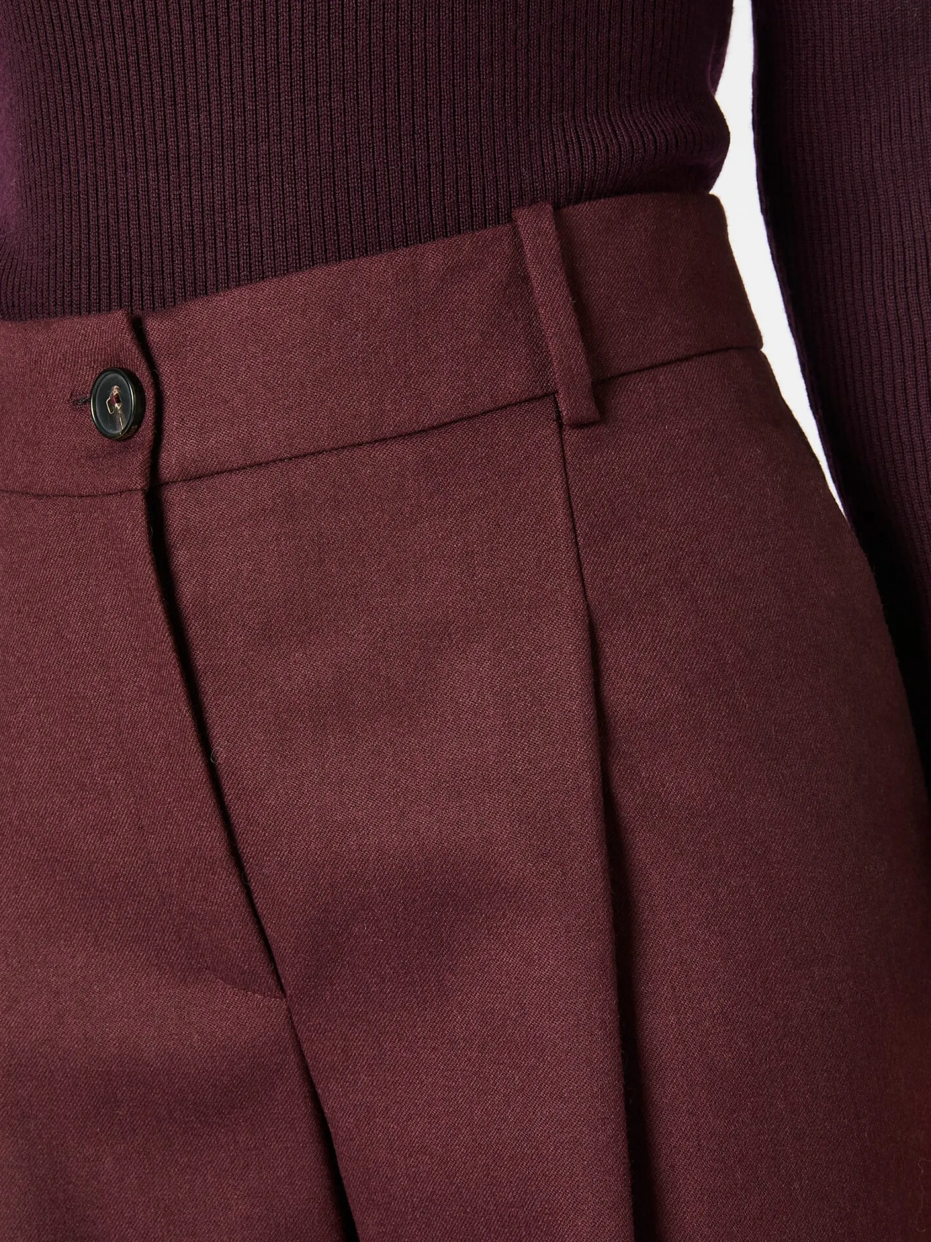 100% Schurwolle. Enthält nichttextile Teile tierischen Ursprungs: Hornknopf. Kunststoffreißverschluss. Hergestellt in Portugal. Innenbeinlänge bei Größe 38 = 80 cm.