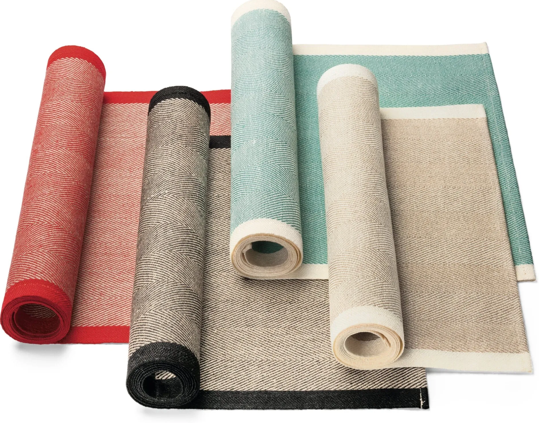 Lapuan Kankurit, eine im westfinnischen Städtchen Lapua ansässige, familiengeführte Leinen- und Jacquardweberei, fertigt diese Tischläufer aus reinem, griffigem Leinen. Durch die Verwendung von naturfarbenem und gefärbtem Garn in Kette und Schuss kommt das breite Fischgratmuster mit dem leinentypischen Glanz sehr gut zur Geltung. Die Weberei verarbeitet nur beste Leinengarne aus Langfaserflachs europäischer Provenienz, auch für diese Tischläufer.