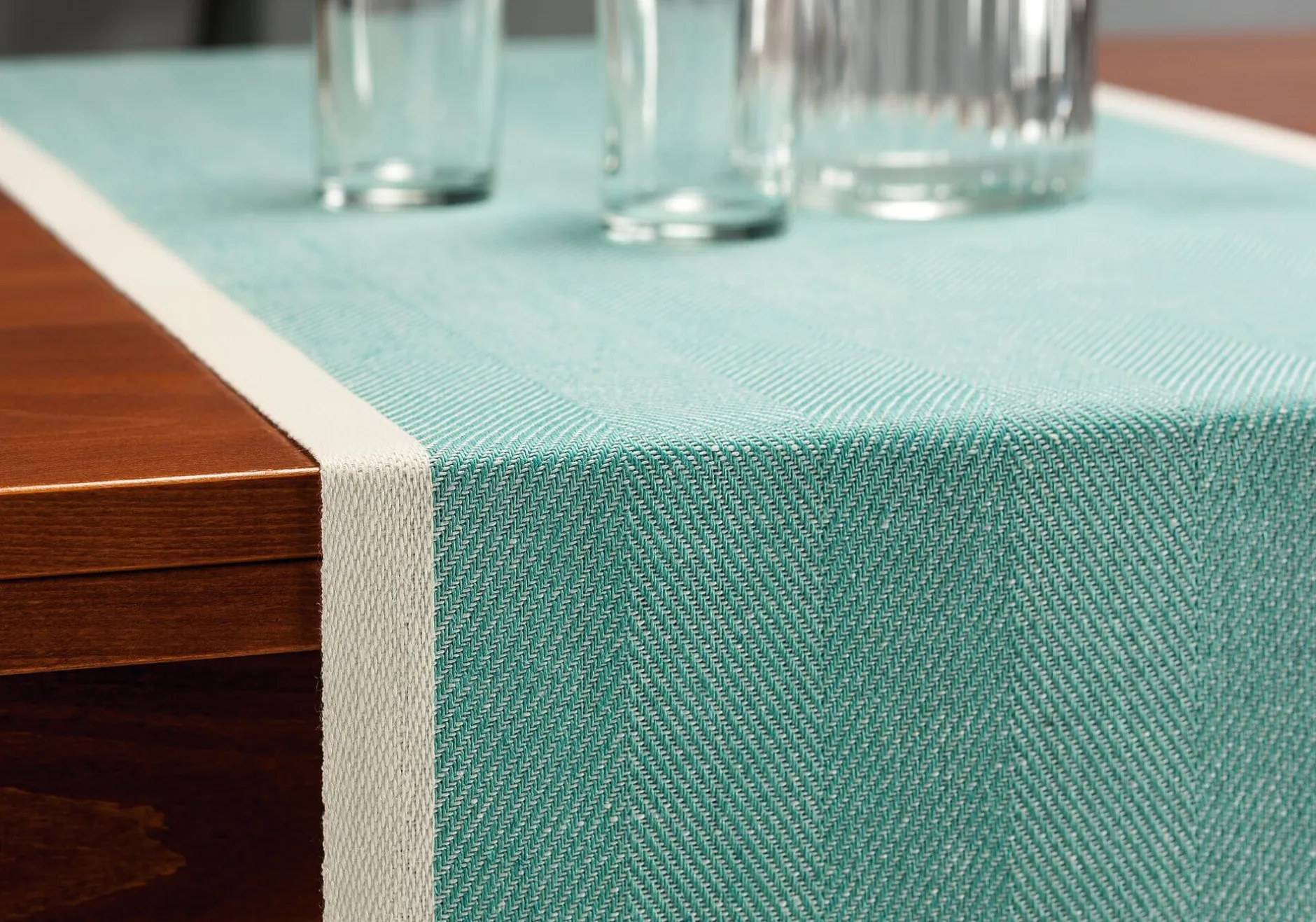 - Die Webart bringt das Fischgratmuster besonders zur Geltung