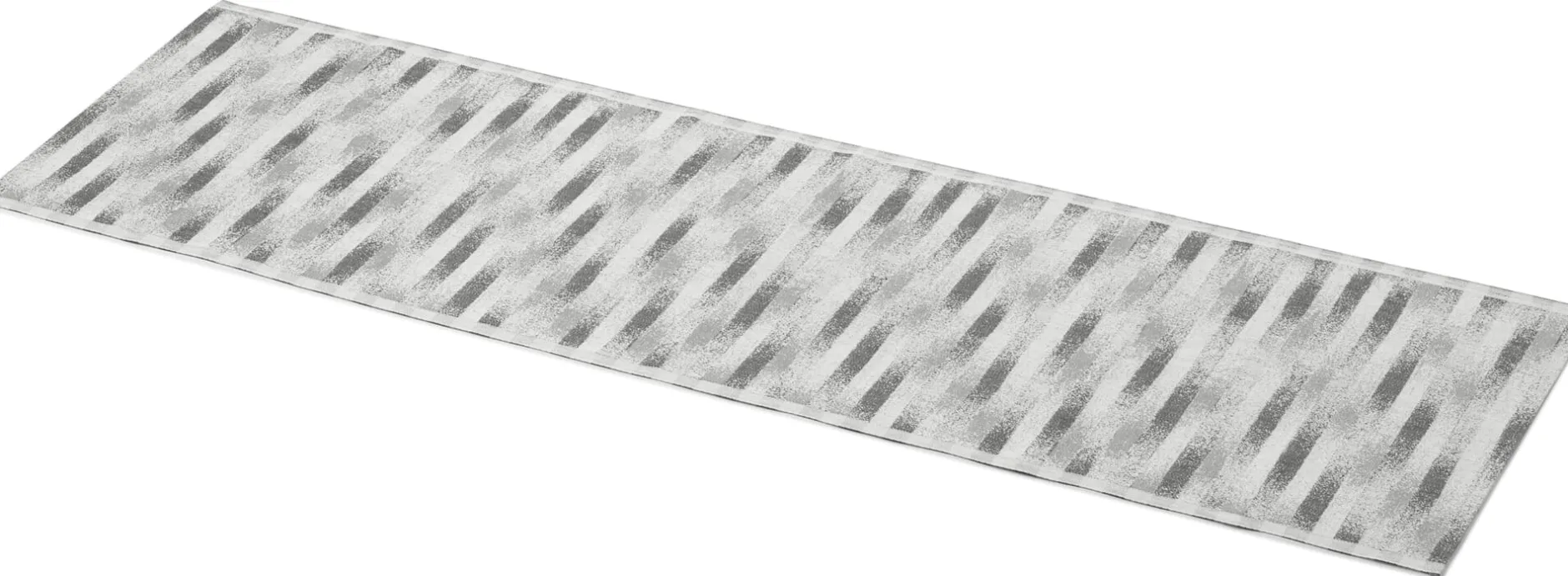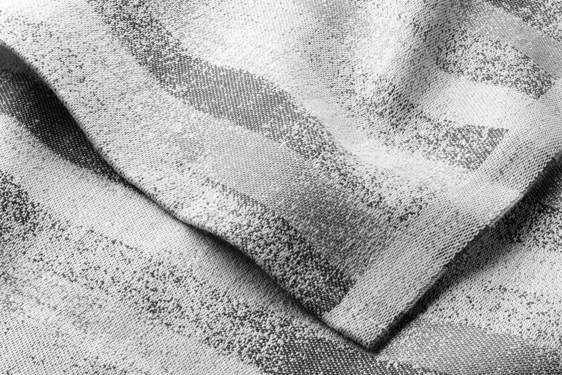 Wer gern und häufig in die Sauna geht, wird das Format dieses Saunatuchs zu schätzen wissen: Es ist schmaler als ein Badetuch und etwas länger, sodass Sie sich bequem daraufsetzen können und gleichzeitig noch genügend „Material“ übrig haben, um das Tuch im Rücken beim Anlehnen und unter den Füßen platzieren zu können. Aufgrund der Mischung aus schnelltrocknendem, saugfähigem Leinen (60%) und weicher, hautsympathischer Baumwolle ist das Gewebe strapazierbar und hält vielen Sauna- und Waschgängen stand. Das dank der Farbgebung unempfindliche Muster ist – wie bei Lapuan Kankurit üblich – jacquardgewebt und zeigt sich auf der Rückseite gegengleich. An den Webkanten der Längsseiten können Sie übrigens erkennen, dass die Sauna-Bankauflage auf einem Schützenwebstuhl gewebt wird. Diese Kanten entstehen, wenn der Webstuhl eigens für die jeweilige Breite des Webguts eingerichtet wird und der Schussfaden nicht einfach abgeschnitten, sondern endlos weitergeführt wird. So müssen nur die obere und die untere Schnittkante gesäumt werden. Diese aufwendige Webart hat überdies den Vorteil, dass Sie das Tuch auch als Tischläufer verwenden können – falls Sie gar nicht in die Sauna gehen …