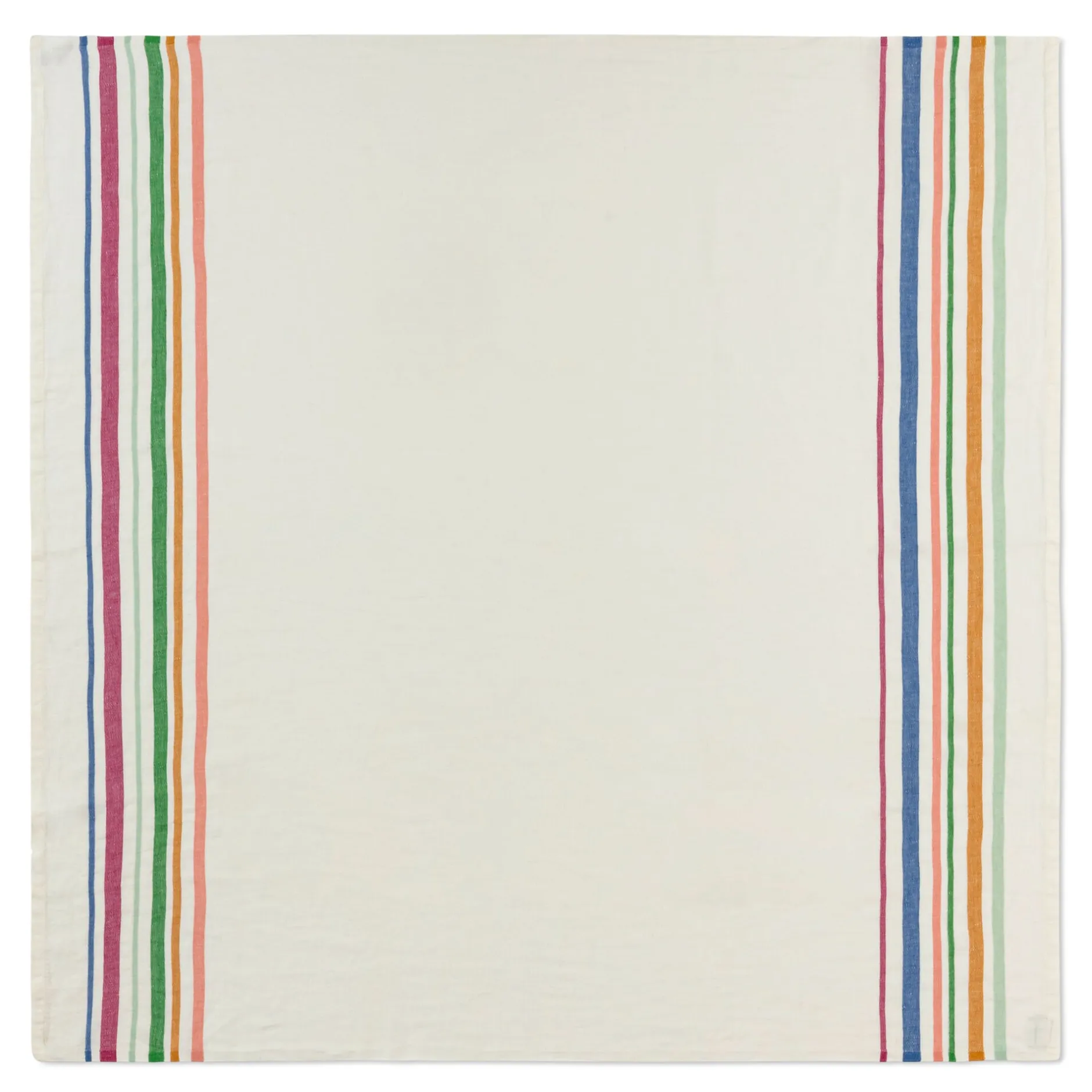 Ihr Design und die fröhlichen Farben verdankt die Tischwäsche diesem kenianischen Einfluss, denn in den naturweißen Fond sind unterschiedlich breite, garngefärbte Streifen eingewebt.