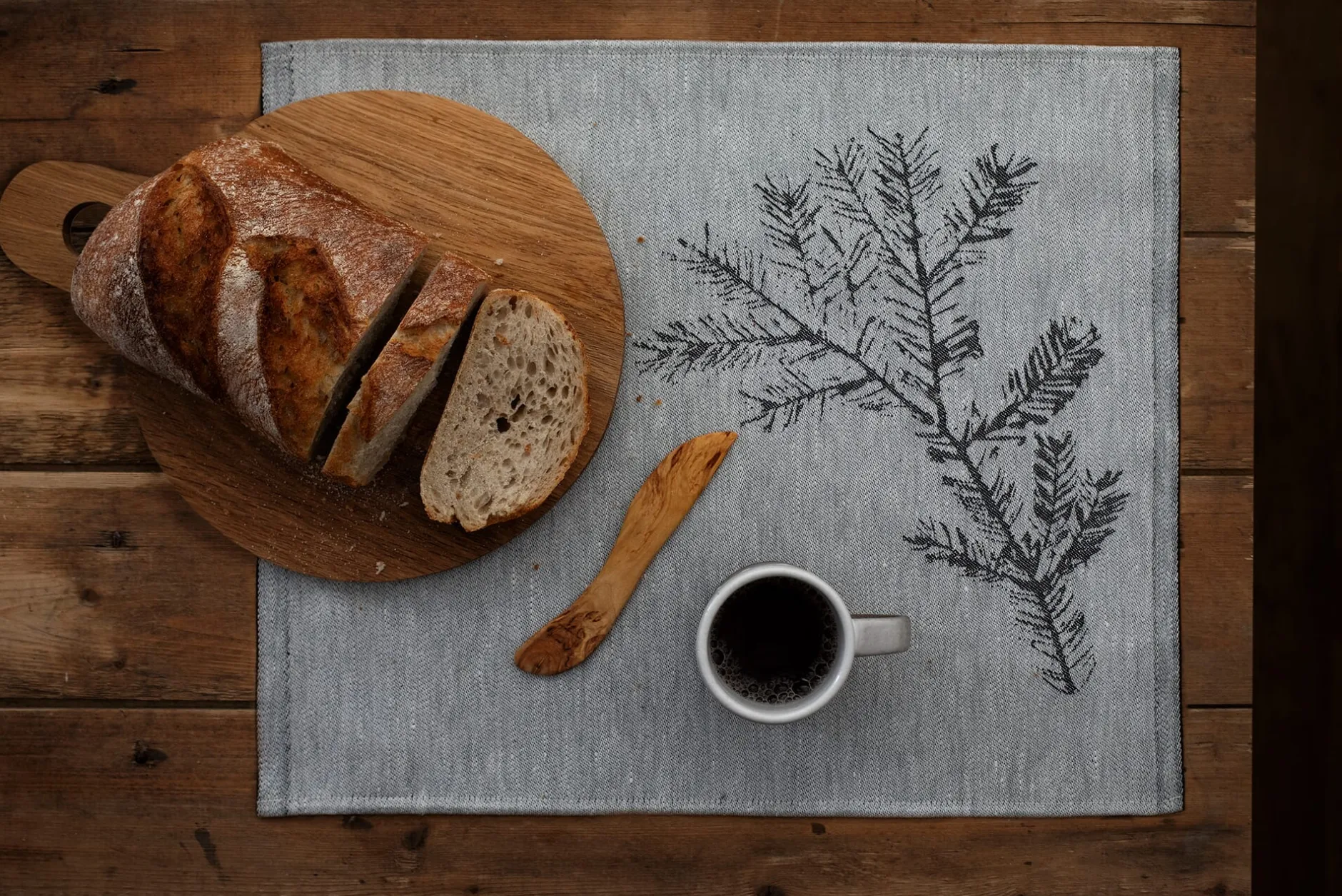 Die Illustration aus der Feder von Teemu Järvi scheint sich den Jahreszeiten anzupassen: Im Herbst sorgt das Tischset für herbstliche Stimmung, in der Adventszeit passt es zu Weihnachtskranz & Co., es lässt sich aber genauso gut im Frühjahr und Sommer verwenden. Lapuan Kankurit verwendet Leinengarn aus bestem europäischem Langfaserflachs (mit dem Siegel Masters of Linen®). Der Anteil an Baumwolle (40%) sorgt für den weichen Griff. Mit einem mittleren Flächengewicht von 300 g/qm ist es recht robust und strapazierbar. Die jacquardgewebte Illustration zeigt sich auf der Rückseite in gegengleicher Farbe. Einen passenden Tischläufer und ein Geschirrtuch mit diesem Motiv finden Sie ebenfalls in unserem Sortiment.