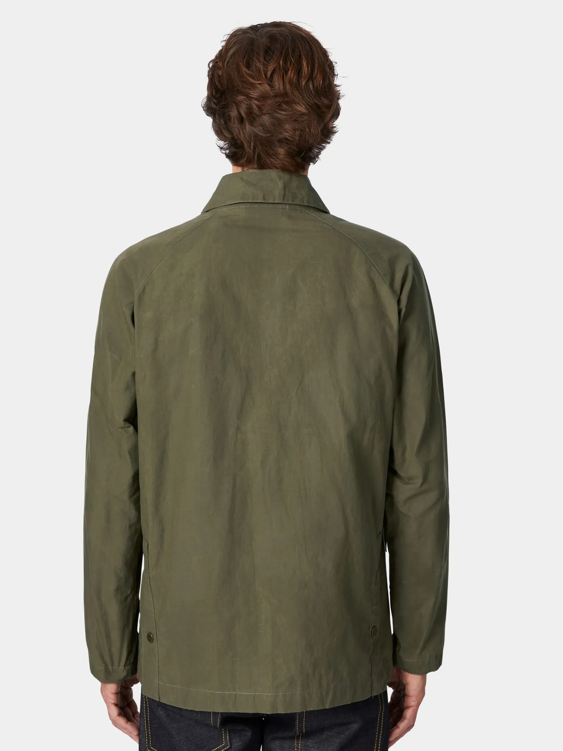 Hier kommt eine Jacke, bei welcher der arg strapazierte Begriff Funktionskleidung wirklich zutrifft. Der Stoff und die Details sind rein nach funktionalen Aspekten ausgewählt und der Schnitt ist so gestaltet, dass er die natürlichen Bewegungen des Körpers nicht einschränkt. Das beginnt beim Oberstoff, einem griffigen, paraffingetränkten (und damit in Maßen wasserabweisenden und trotzdem flexiblen) Baumwolltuch. Die Ärmel sind als Raglanärmel ausgeführt, was den Tragekomfort erhöht und eine obenliegende Schulternaht vermeidet, durch die leichter Feuchtigkeit eindringen könnte. Das Rumpffutter aus Baumwolle mit Polyesteranteil ist hautsympathisch und robust zugleich, das Ärmelfutter aus Polyester und etwas Elastan sorgt für bequemes An- und Ausziehen. Reißverschlüsse und Druckknöpfe sind aus solidem Metall. Über dem Reißverschluss liegt eine windabweisende geknöpfte Blende, mit dem ebenfalls geknöpften Sturmriegel im Kragen lässt sich die Jacke bei Bedarf hoch schließen. Zwei geknöpfte Rückenschlitze sorgen für guten Sitz. Selbst die Taschen sind durchdacht. Vorn sind zwei voluminöse Taschen mit doppelt geknöpften Patten aufgesetzt. Hinzu kommen zwei eingesetzte Brusttaschen, ebenfalls mit doppelt geknöpften Patten. Zwei Innentaschen mit senkrechtem Eingriff, eine geknöpft und eine mit Reißverschluss, vervollständigen den Stauraum der Jacke.