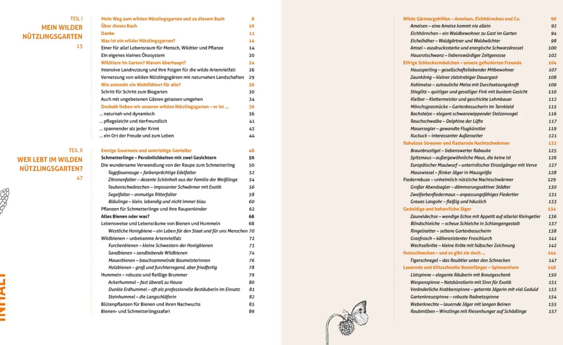 Viele INSEKTEN und WILDTIERE gehören mittlerweile zu den BEDROHTEN ARTEN. Die Ursachen sind vielfältig, die Folgen unabsehbar. Durch intensive Landwirtschaft und den Einsatz von Pestiziden, aber auch durch die Ausbreitung moderner Betonwüsten, verschwinden ihre NATÜRLICHEN LEBENSRÄUME und mit den Hecken und Blumenwiesen verlieren sie ihre NAHRUNGSQUELLEN. Höchste Zeit also, in unseren eigenen Gärten stärker auf das Wohl unserer TIERISCHEN BESUCHER zu achten und letztlich auch uns selbst ETWAS GUTES ZU TUN: genau hinschauen und -hören, der NATUR ZEIT und RAUM geben und das WILDSEIN wieder lernen.