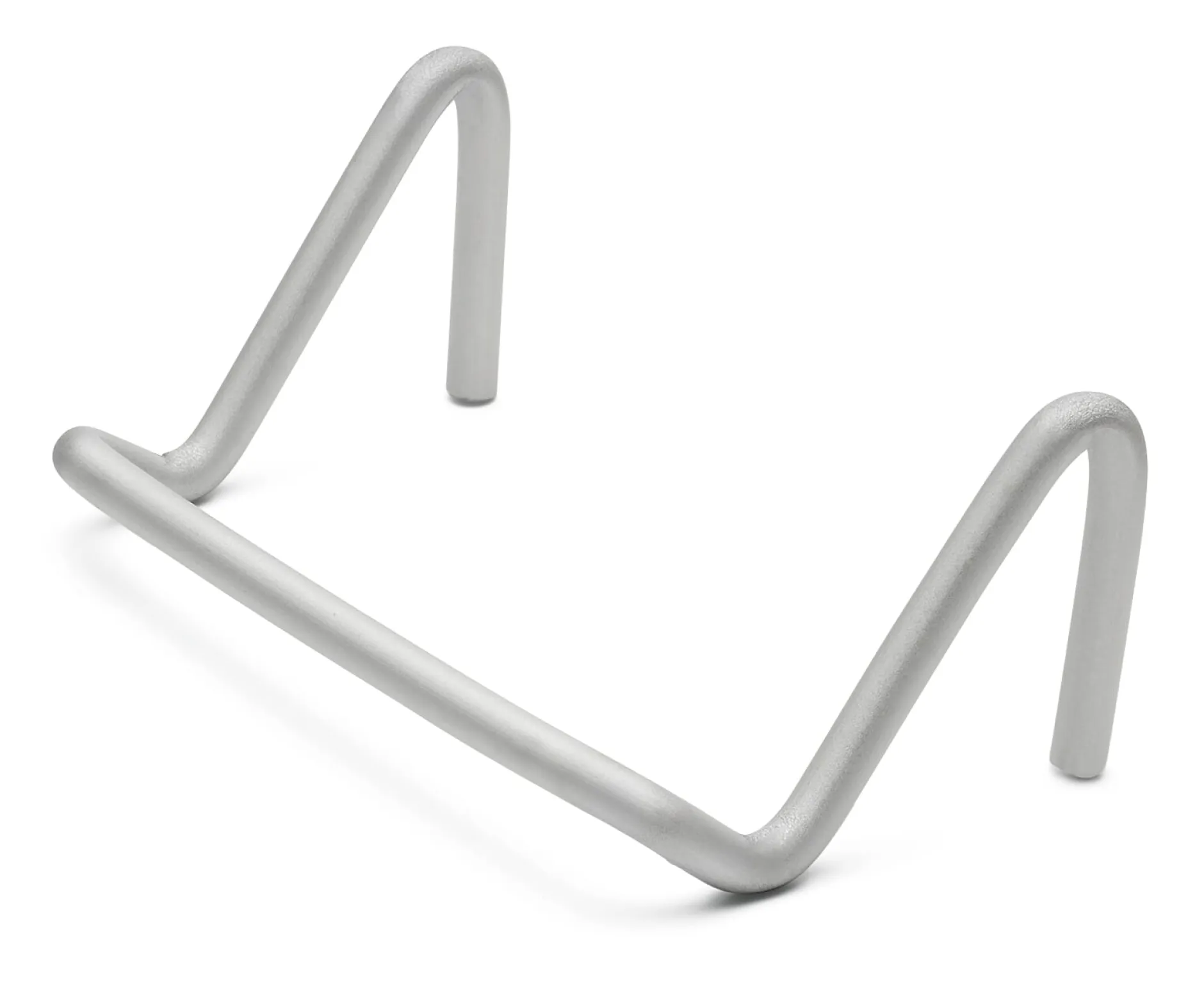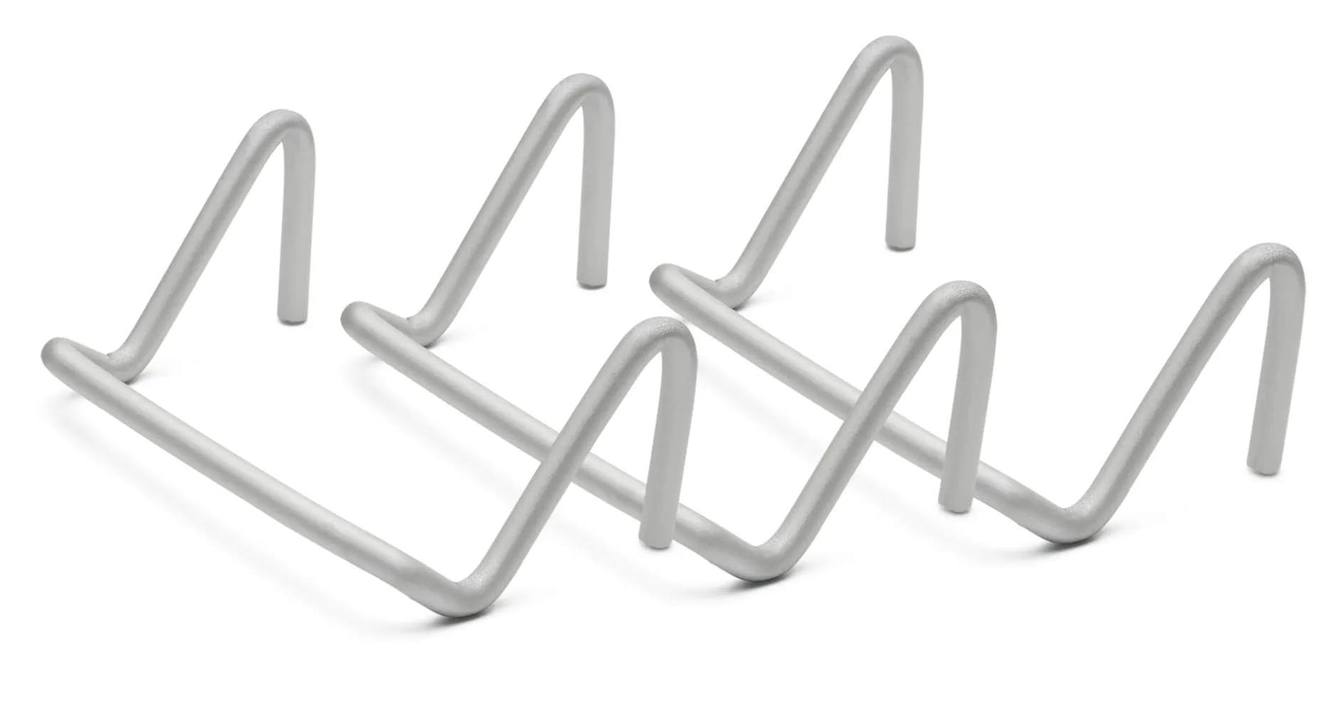 Doppelhaken aus mattiertem Edelstahl zum Einhängen in die Maschung des Seitengitters für das Garderobengestell zu CONTAINER DS.