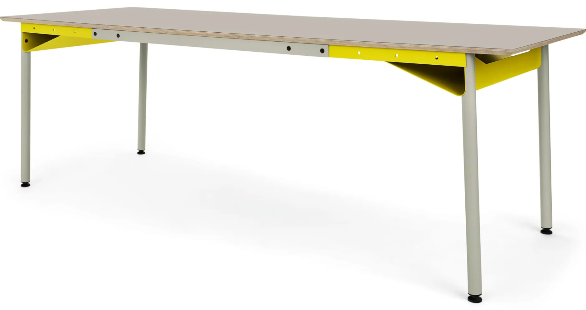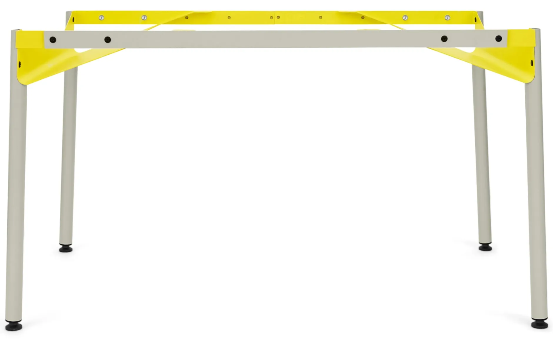 Wie aus dem Lehrbuch der Konstruktion: Diagonale heißt das Zauberwort! Beim Tischgestell ZEHDENICKER sorgt sie – elegant ausgeformt mit den an den Kopfseiten platzierten wannenartigen Bauteilen – für Stabilität und Verwindungssteifigkeit. Kein Wackeln, kein Schaukeln. Und das unabhängig davon, ob das Gestell im Architekturbüro oder am Essplatz eingesetzt wird. Aber auch sonst hat der formschöne und trotz seiner Robustheit und Stabilität fast filigran wirkende ZEHDENICKER allerhand zu bieten: Die stählernen Zargen des Tischgestells sind mit einem Lochraster versehen und erlauben es, das Gestell zwischen einer Breite von 135 bis 210 cm in festen Abständen zu variieren. Die beiden Wannen an den Köpfen des Tischs sind als Ablage für beispielsweise Servietten am Esstisch, Zeitungen oder auch die Mehrfachsteckdose am Arbeitsplatz zu nutzen. Zur Ausstattung gehören nivellierbare Stellfüße an den Tischbeinen. Alle Bauteile werden getrennt geliefert und sind mit wenigen Schrauben im Handumdrehen montiert.