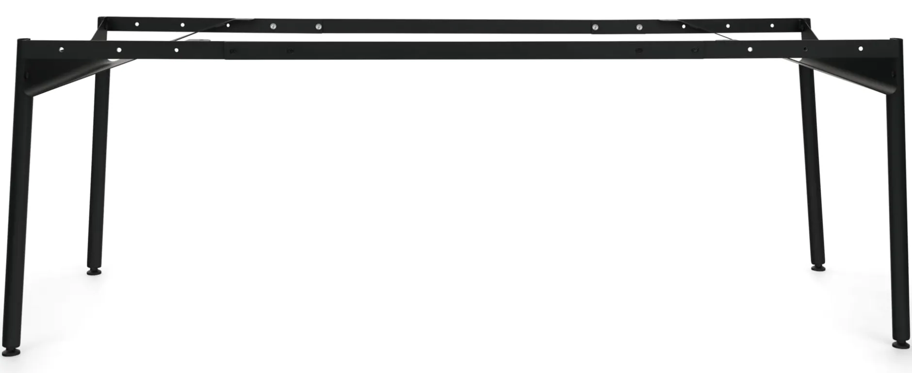Wie aus dem Lehrbuch der Konstruktion: Diagonale heißt das Zauberwort! Beim Tischgestell ZEHDENICKER sorgt sie – elegant ausgeformt mit den an den Kopfseiten platzierten wannenartigen Bauteilen – für Stabilität und Verwindungssteifigkeit. Kein Wackeln, kein Schaukeln. Und das unabhängig davon, ob das Gestell im Architekturbüro oder am Essplatz eingesetzt wird. Aber auch sonst hat der formschöne und trotz seiner Robustheit und Stabilität fast filigran wirkende ZEHDENICKER allerhand zu bieten: Die stählernen Zargen des Tischgestells sind mit einem Lochraster versehen und erlauben es, das Gestell zwischen einer Breite von 135 bis 210 cm in festen Abständen zu variieren. Die beiden Wannen an den Köpfen des Tischs sind als Ablage für beispielsweise Servietten am Esstisch, Zeitungen oder auch die Mehrfachsteckdose am Arbeitsplatz zu nutzen. Zur Ausstattung gehören nivellierbare Stellfüße an den Tischbeinen. Alle Bauteile werden getrennt geliefert und sind mit wenigen Schrauben im Handumdrehen montiert.