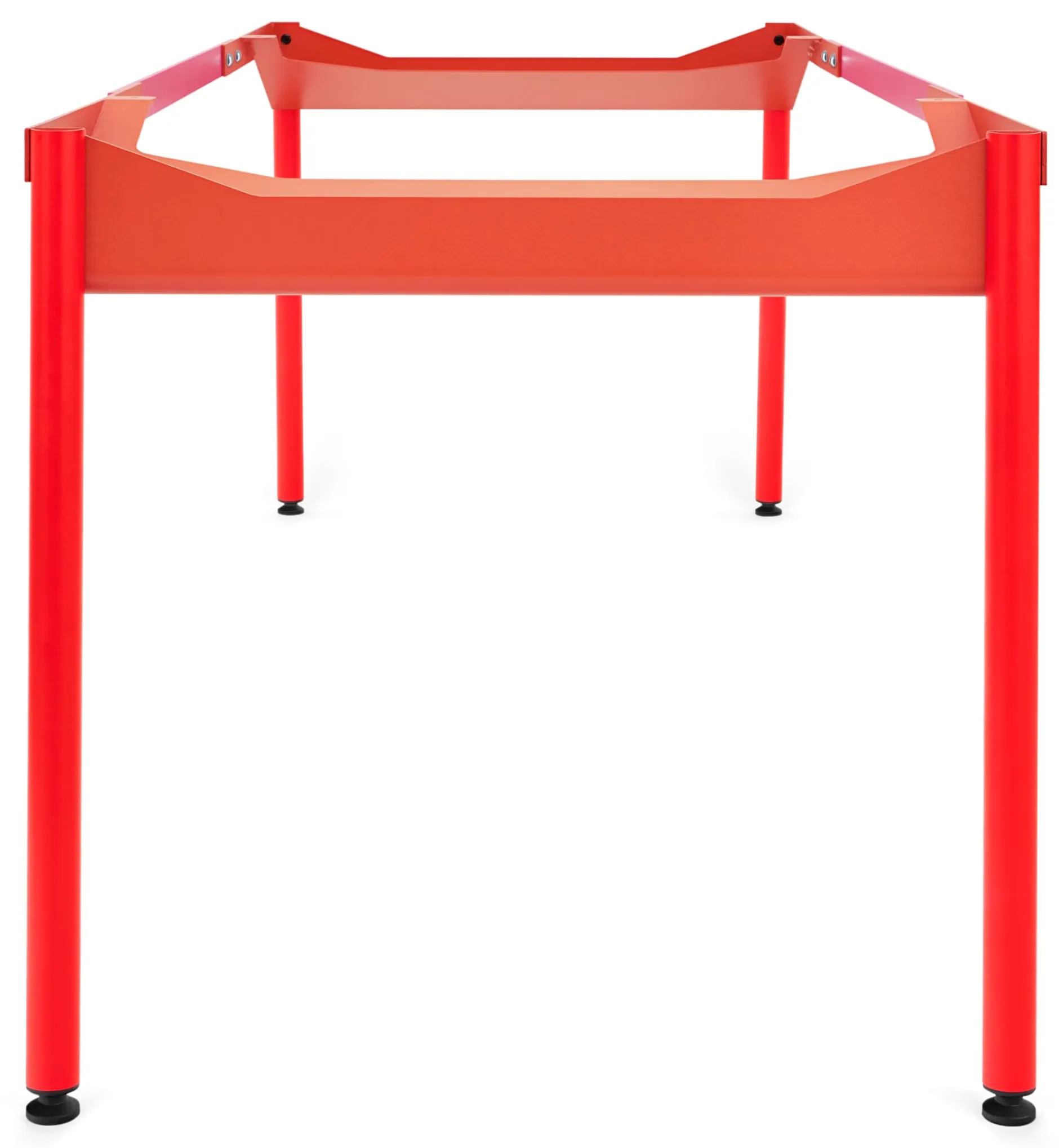 Wie aus dem Lehrbuch der Konstruktion: Diagonale heißt das Zauberwort! Beim Tischgestell ZEHDENICKER sorgt sie – elegant ausgeformt mit den an den Kopfseiten platzierten wannenartigen Bauteilen – für Stabilität und Verwindungssteifigkeit. Kein Wackeln, kein Schaukeln. Und das unabhängig davon, ob das Gestell im Architekturbüro oder am Essplatz eingesetzt wird. Aber auch sonst hat der formschöne und trotz seiner Robustheit und Stabilität fast filigran wirkende ZEHDENICKER allerhand zu bieten: Die stählernen Zargen des Tischgestells sind mit einem Lochraster versehen und erlauben es, das Gestell zwischen einer Breite von 135 bis 210 cm in festen Abständen zu variieren. Die beiden Wannen an den Köpfen des Tischs sind als Ablage für beispielsweise Servietten am Esstisch, Zeitungen oder auch die Mehrfachsteckdose am Arbeitsplatz zu nutzen. Zur Ausstattung gehören nivellierbare Stellfüße an den Tischbeinen. Alle Bauteile werden getrennt geliefert und sind mit wenigen Schrauben im Handumdrehen montiert.