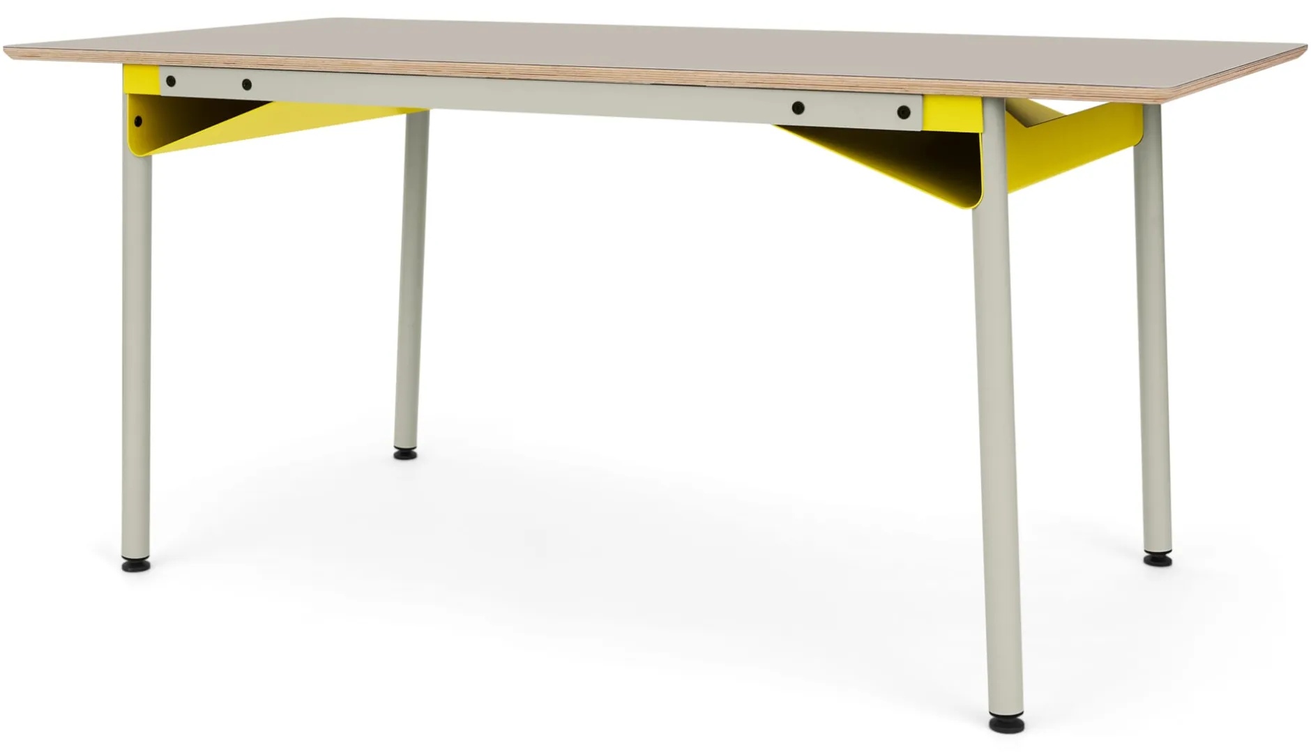 Die Tischplatte für das Tischgestell ZEHDENICKER in der perfekt profilierten Kantenform und gefertigt aus Birke Multiplex mit einem Belag aus hochwertigem Linoleum in Hellgrau. In den Größen 160 cm und 220 cm.